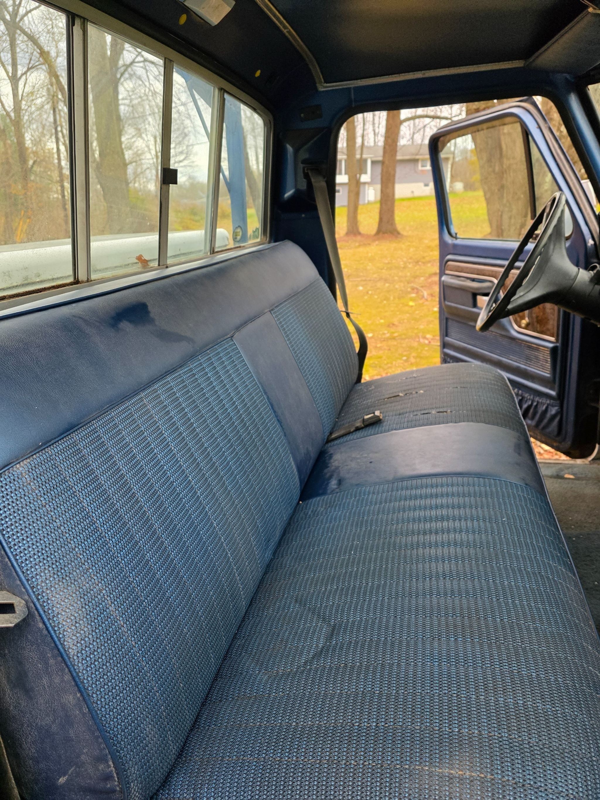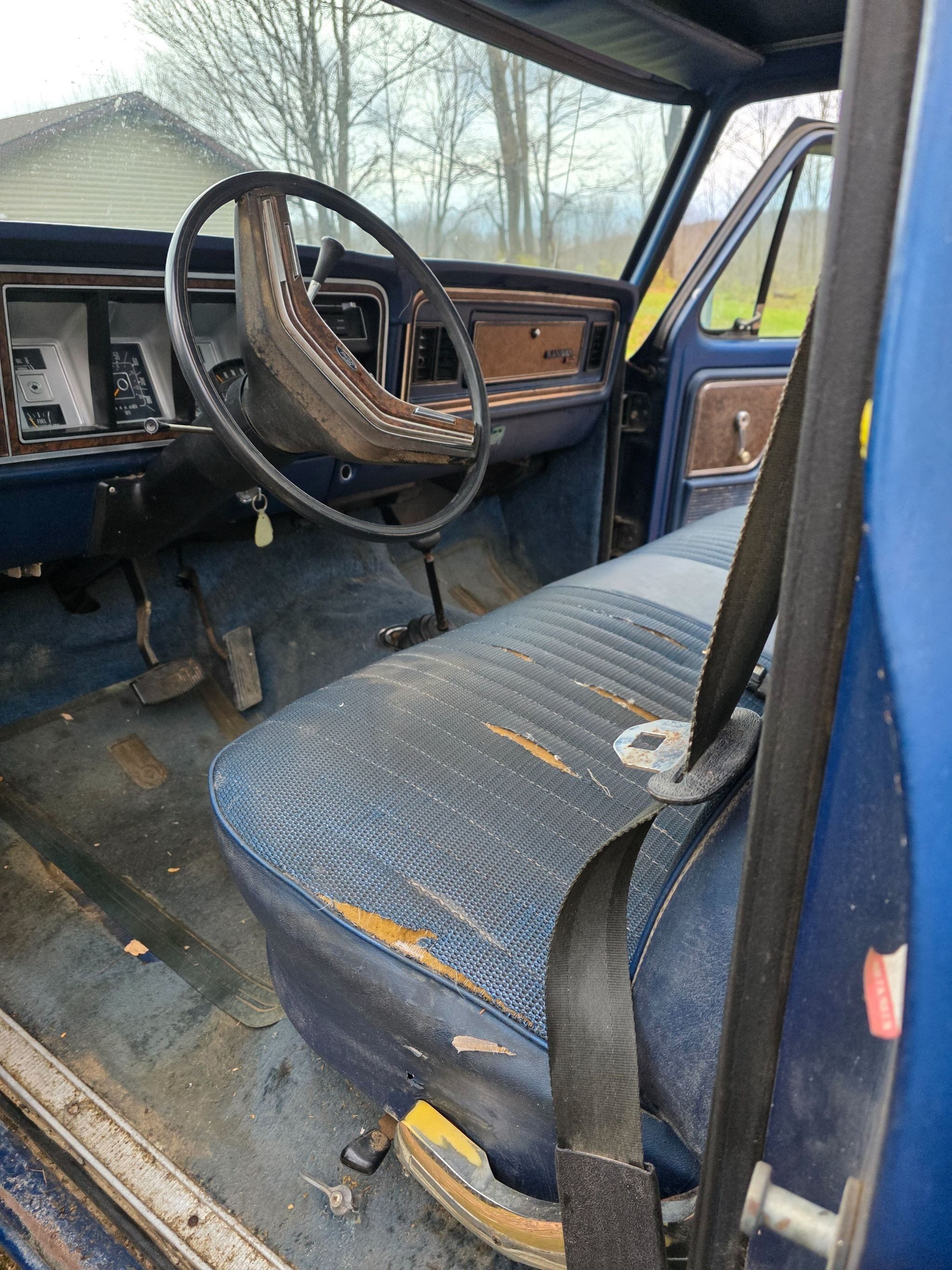Had an almost identical one to this, only a SuperCab version, bought from the original owner. F250 4WD, same color, same interior. Had a 351M (I think). Unfortunately, it did not fare as well as this one, and the guy who bought it from me about 10 years ago (after advertising it on eBay for nearly 3 years – and at ever decreasing prices) bought it more or less only for the front axle. Good workhorse truck, trailered SOOO many cars with that truck, but the rustworm so prevalent here in Ohio really got to it.