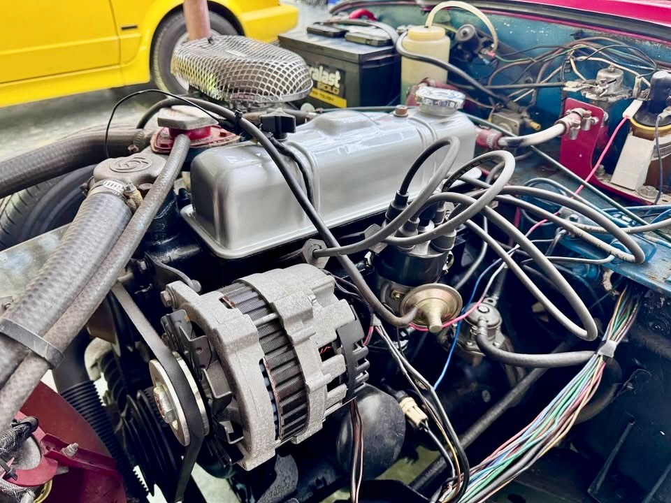 The seller has already done the heavy lifting here. They rebuilt the engine, replaced the floor pans, rocker panels, engine wiring, tires, carpeting, and clutch hydraulics. It still needs the interior wiring replaced, the interior put back together, and the paint polished up.