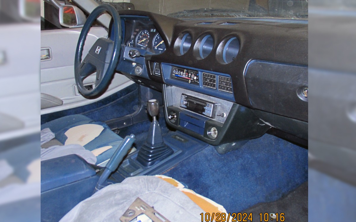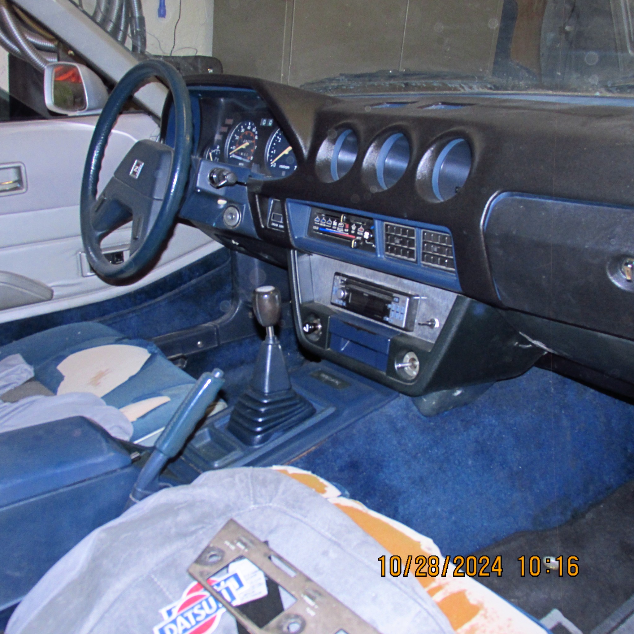 What a mish mash of good pics, bad pics and bizarre pics. Interior pics show a black dash with blue front, black dash with black front. Some pics from 10/24. Some pics of unrecognizable parts and ?? No full profile pics of car, owner couldn’t be bothered with pushing it out and hosing it off.