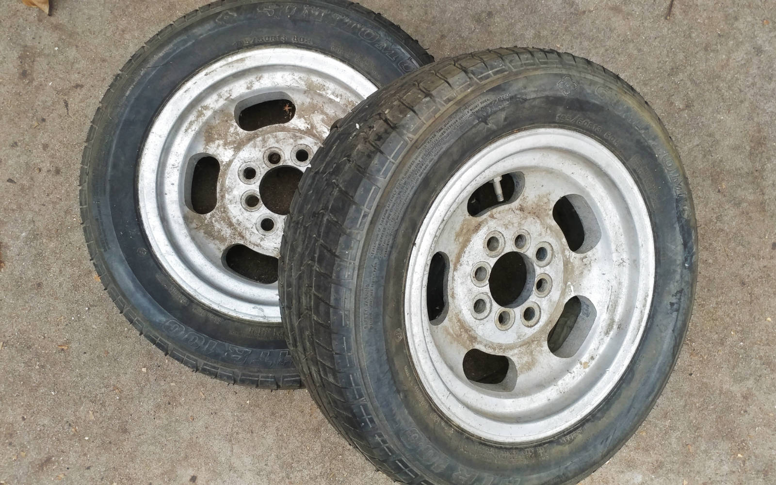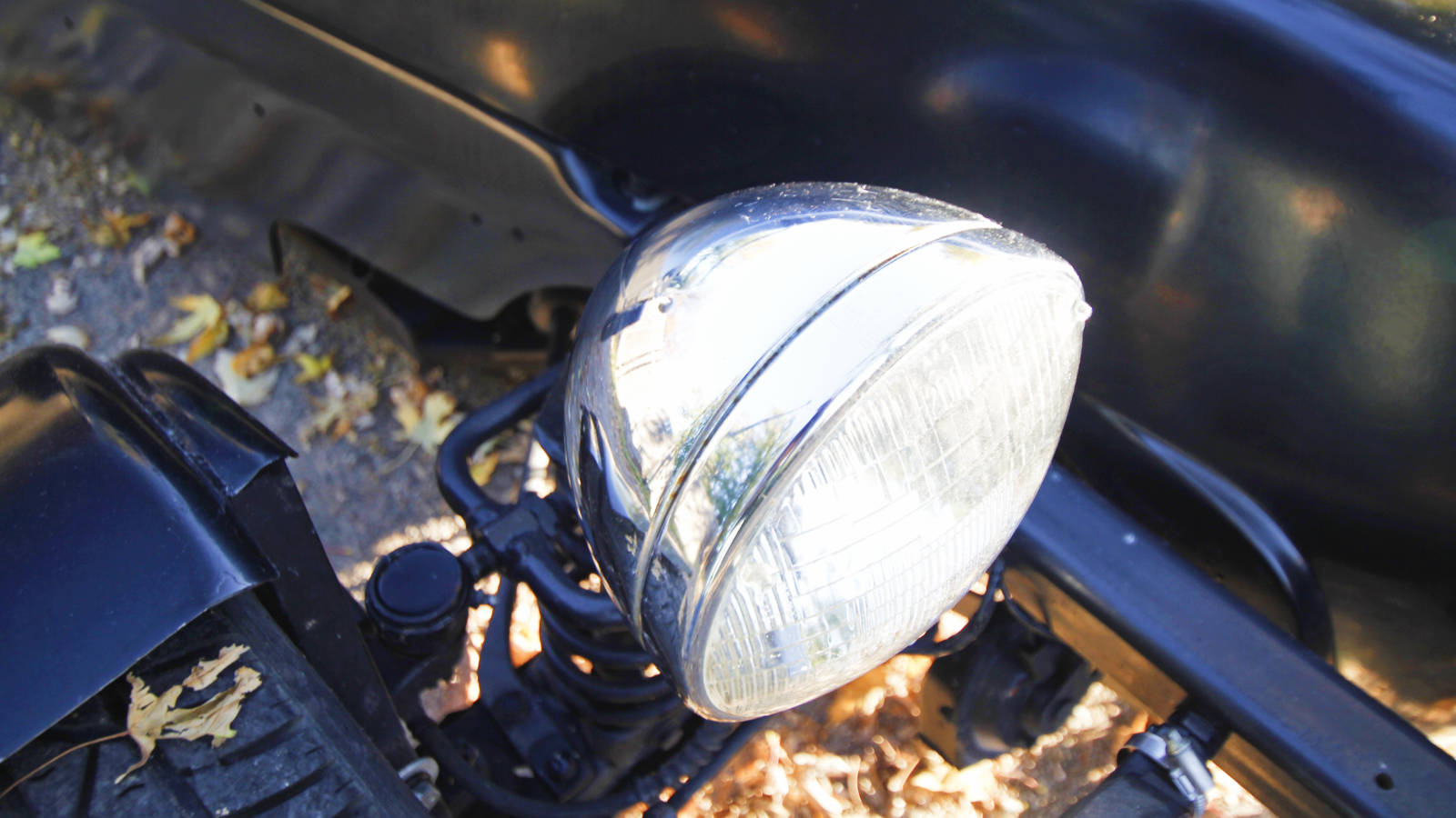 Here’s how the car looked prior to coming to Idaho from California. The owner I bought it from tried to hill climb the car, but was disappointed that it wasn’t as fast as his Formula Ford racer. Prior to taking it racing, he had a set of cycle front fenders made, painted it black, installed a smaller steering wheel, swapped the Pinto seats for plastic buckets, mounted 5 point harnesses and put some seriously wide tires on it (I have 2 more rims with tires that come with it). I have the original front fenders and the mounting brackets for them, if you’d like to have a little more protection from flying rocks and water. I also installed a set of Triumph TR3 wind wings, which do help with wind noise and water spray off the tires.