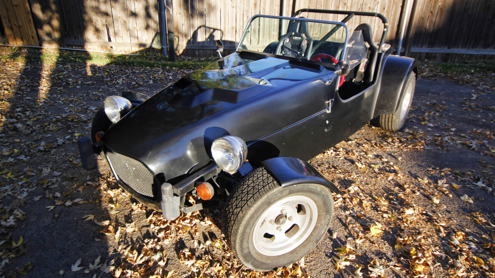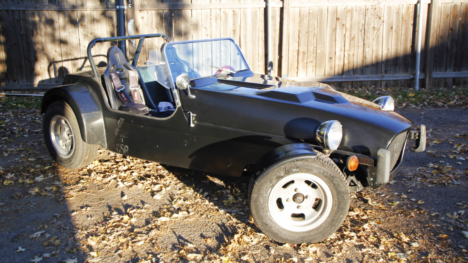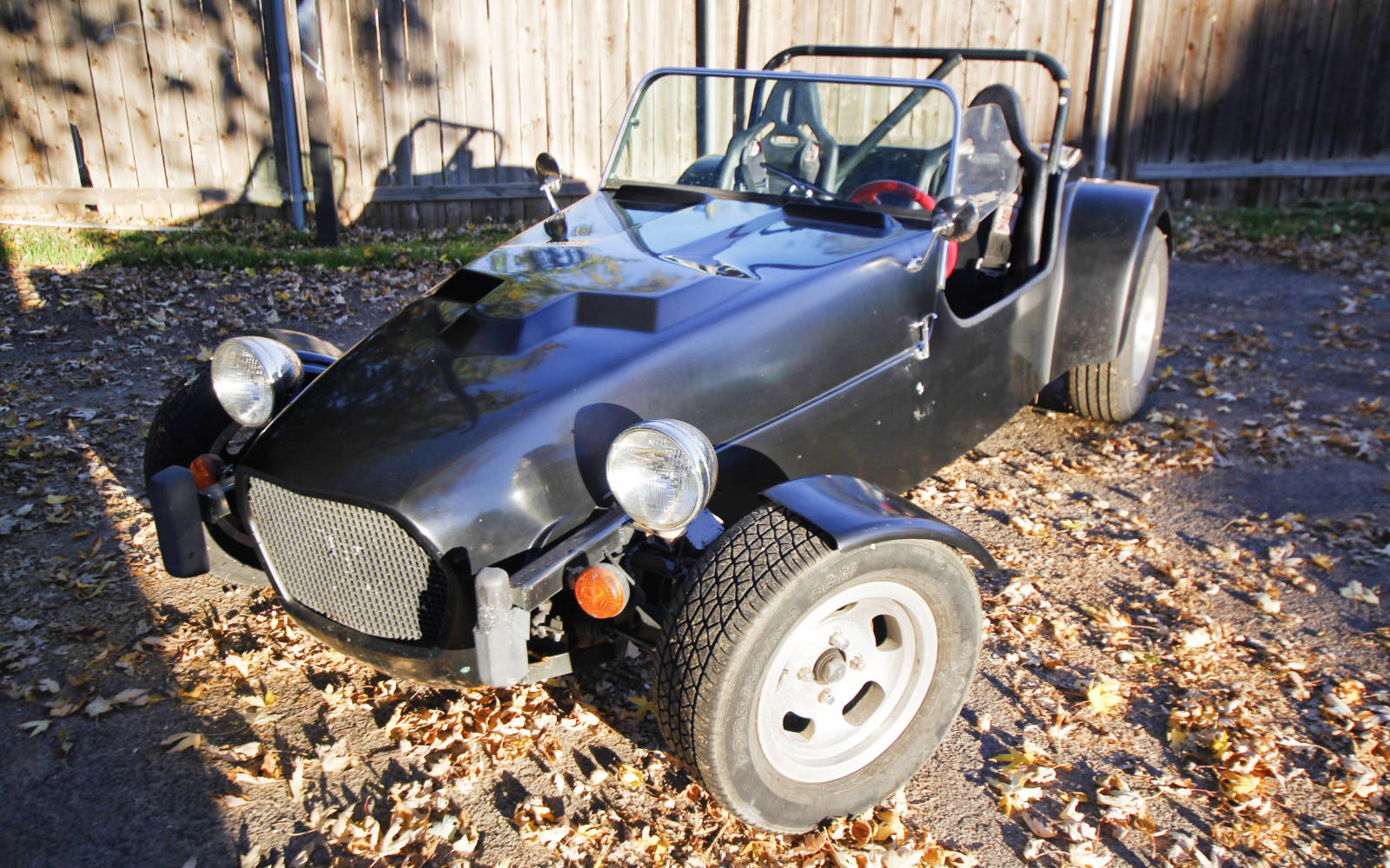 If you’ve always dreamed of owning a Lotus Seven, but just can’t justify the cost, this car is a great alternative. The fiberglass body isn’t quite as attractive as an early Seven, but it actually looks great and keeps the car’s weight down. I haven’t weighed it, but based on how it handles, I would guess it is around 1,300 pounds. And as you can see, after giving it a bath, it’s looking pretty good.