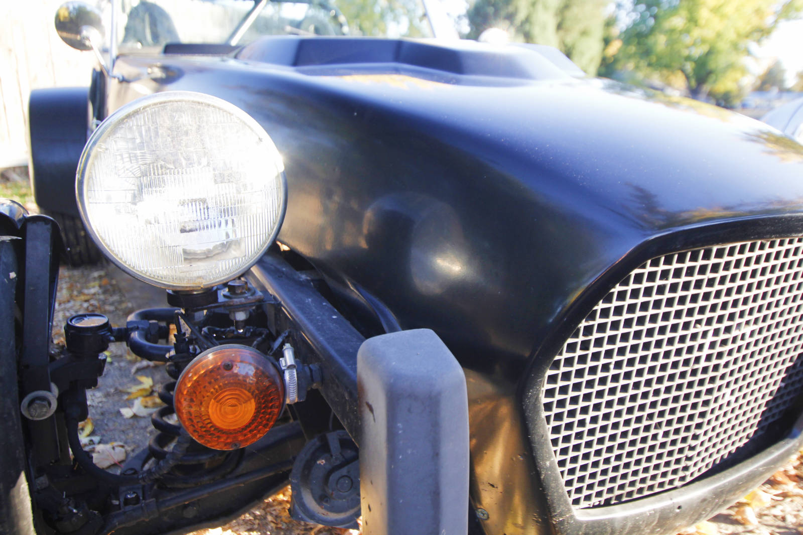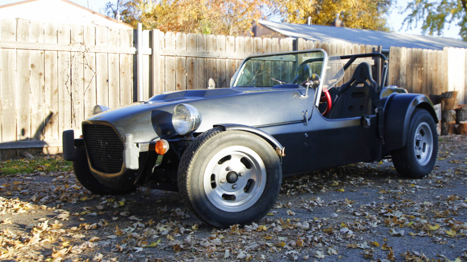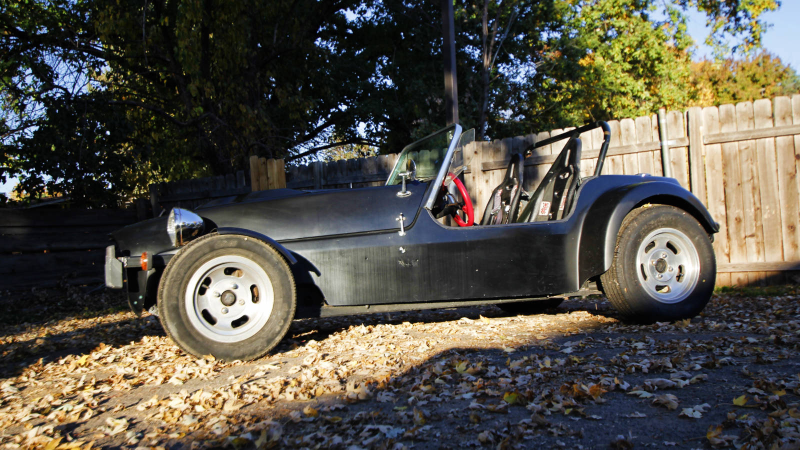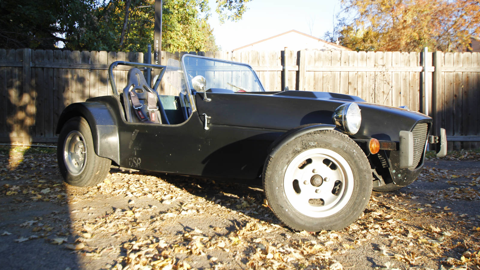 If you’ve always dreamed of owning a Lotus Seven, but just can’t justify the cost, this car is a great alternative. The fiberglass body isn’t quite as attractive as an early Seven, but it actually looks great and keeps the car’s weight down. I haven’t weighed it, but based on how it handles, I would guess it is around 1,300 pounds. And as you can see, after giving it a bath, it’s looking pretty good.