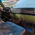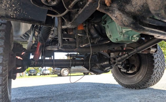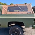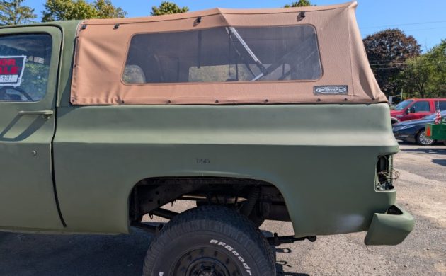 The seller has replaced the driver’s quarter panel and door skins and splashed on some army drab to even things out. It also has a new khaki Softopper vinyl top to cover the rear seating area, along with new door sills. There are some interior issues that the new owner will have to work out. The “front interior needs some completion.” At present the odometer is showing 71,000 miles.
