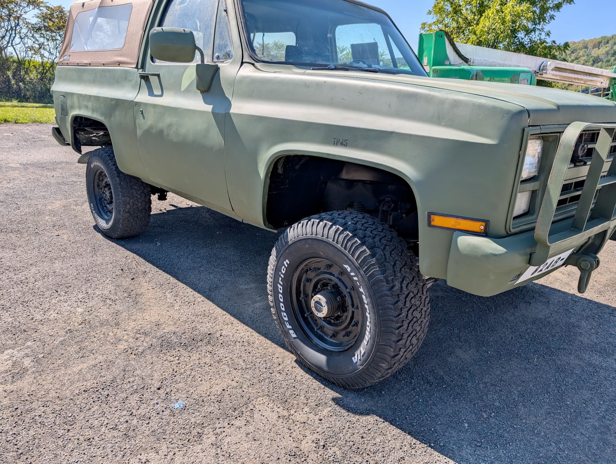 The military-spec Blazers were built to handle anything that might be thrown at them, and our featured truck is upgraded beyond that. Beyond the 6.2-liter Detroit Diesel V8, which originally produced 135 horsepower, this K5 has the following: