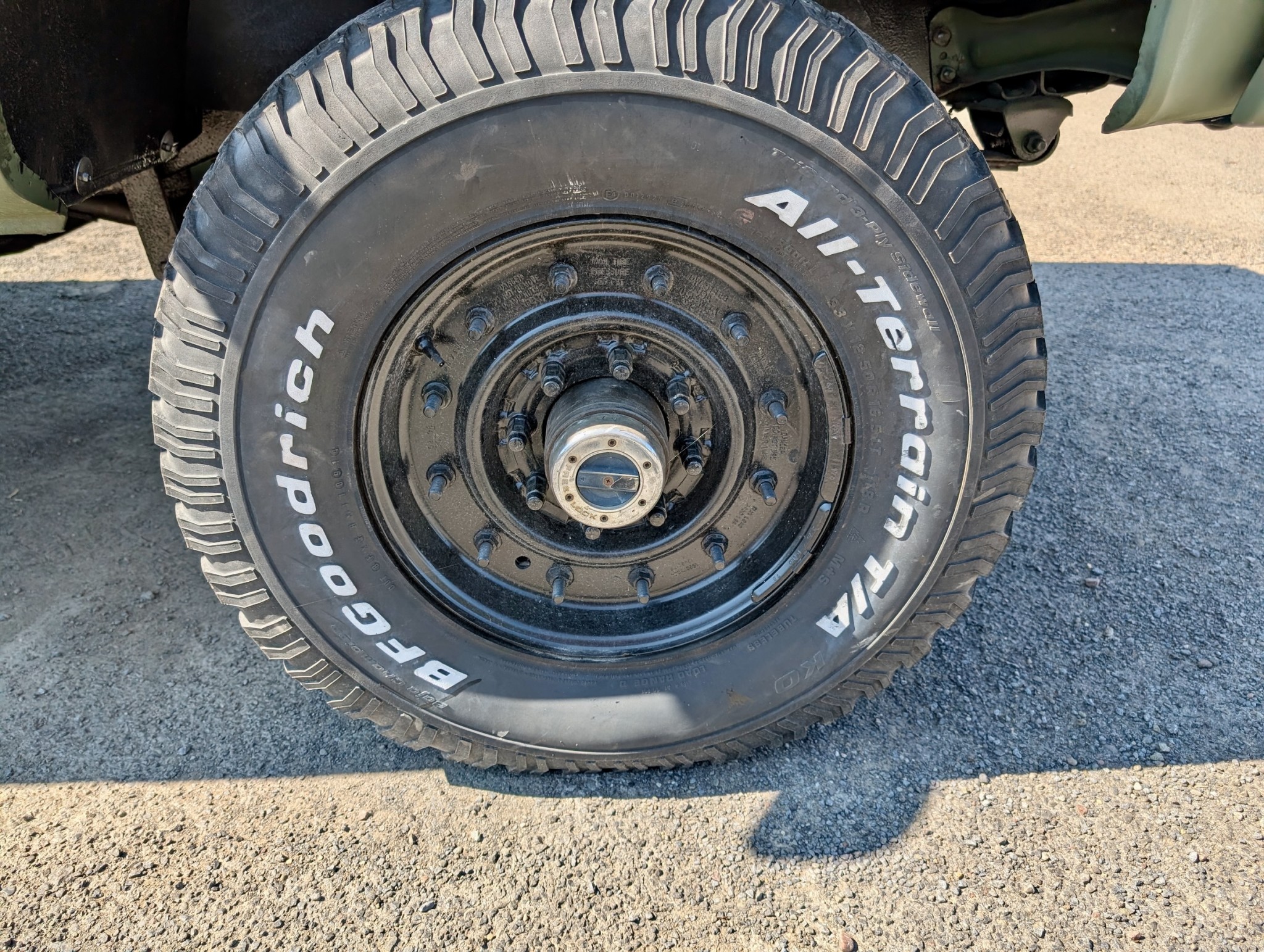 - HMMWV two-part, eight-lug wheels with 33×12.5 BF Goodrich tires