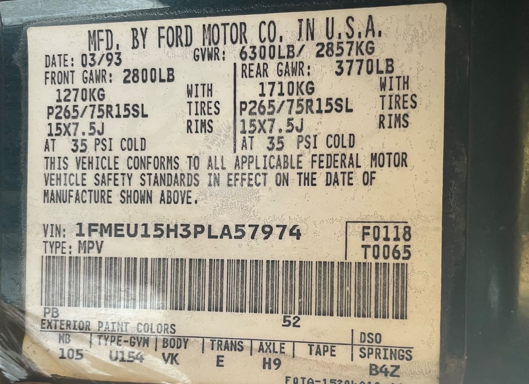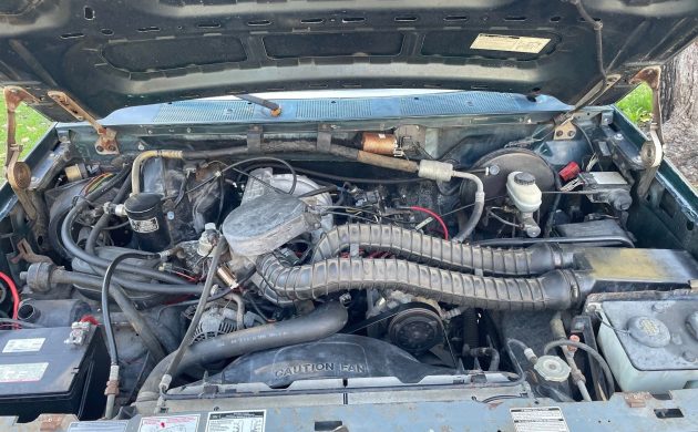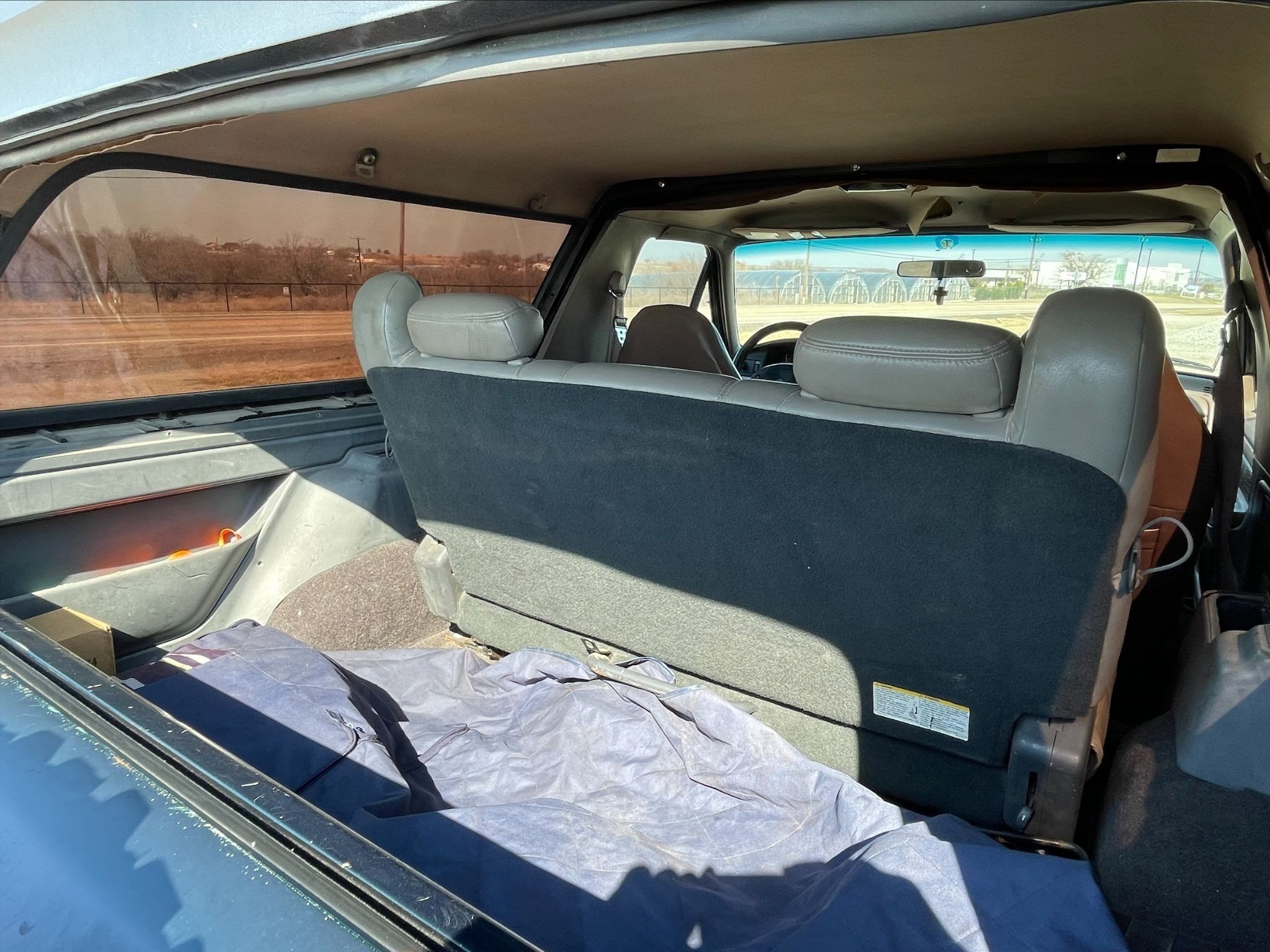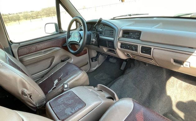 The top-of-the-line V8 in 1993 Broncos was the 351 Windsor, which produced 200 horsepower. At some point, this Bronco got a new engine, so it has 236,000 miles on the odometer and about 170,000 miles on the 351. The transmission is an E4OD four-speed automatic, and according to the brochure, 351-powered Broncos with 3.55:1 gears could tow up to 7,100 pounds, so it wasn’t a lightweight. An added bonus: the air conditioning and heater work perfectly.