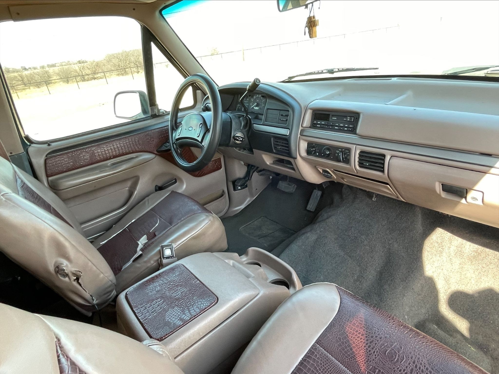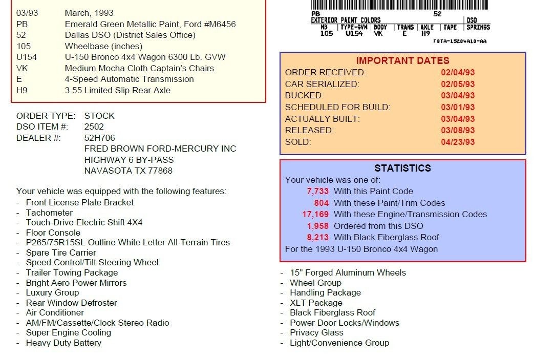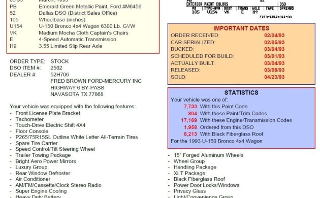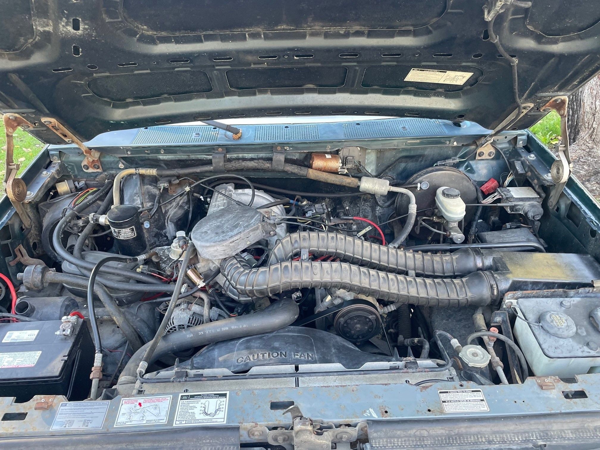 The top-of-the-line V8 in 1993 Broncos was the 351 Windsor, which produced 200 horsepower. At some point, this Bronco got a new engine, so it has 236,000 miles on the odometer and about 170,000 miles on the 351. The transmission is an E4OD four-speed automatic, and according to the brochure, 351-powered Broncos with 3.55:1 gears could tow up to 7,100 pounds, so it wasn’t a lightweight. An added bonus: the air conditioning and heater work perfectly.