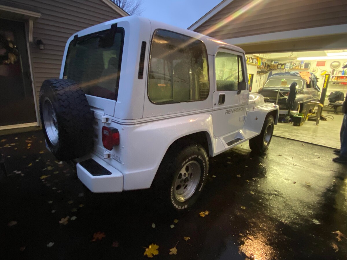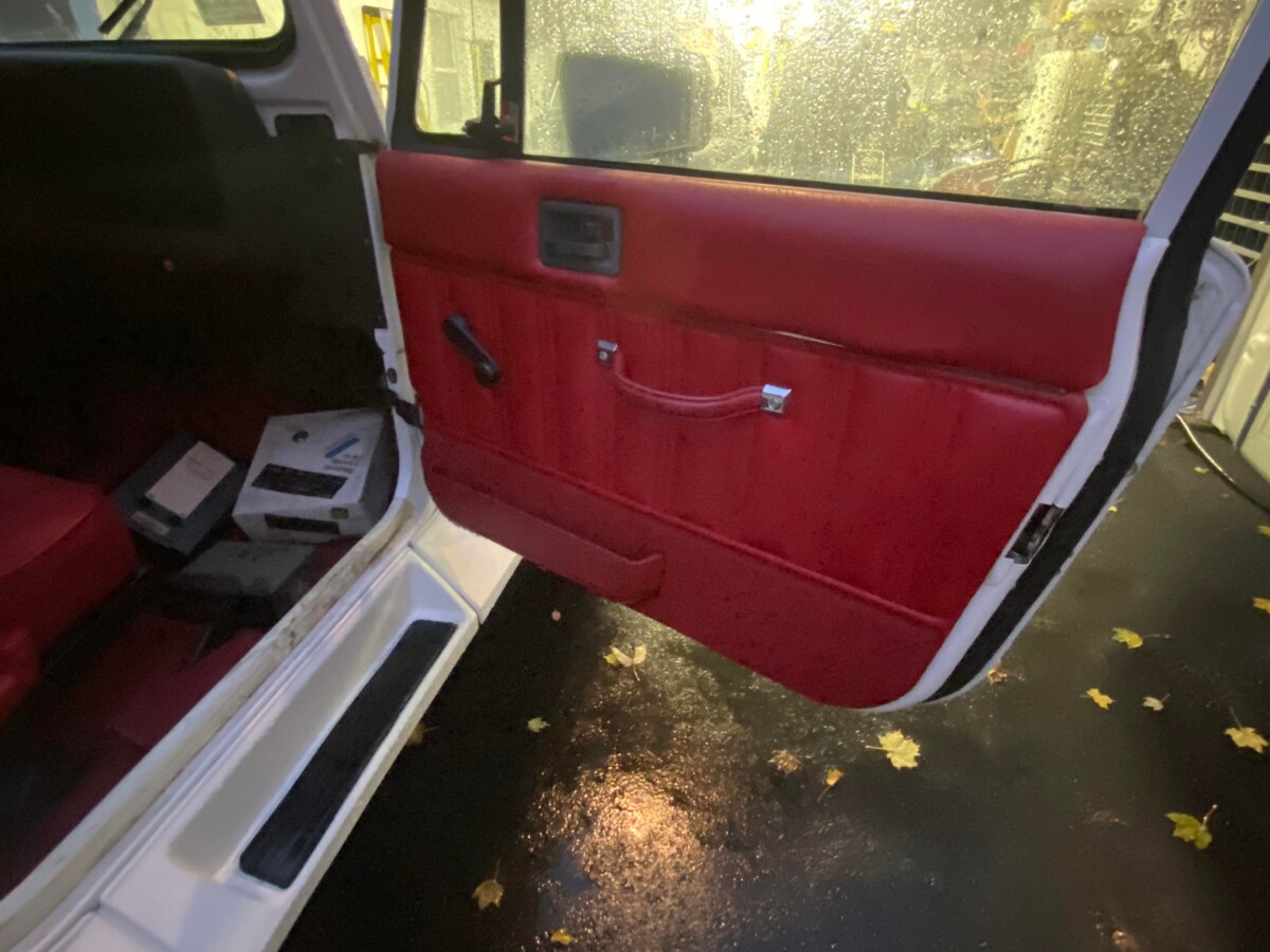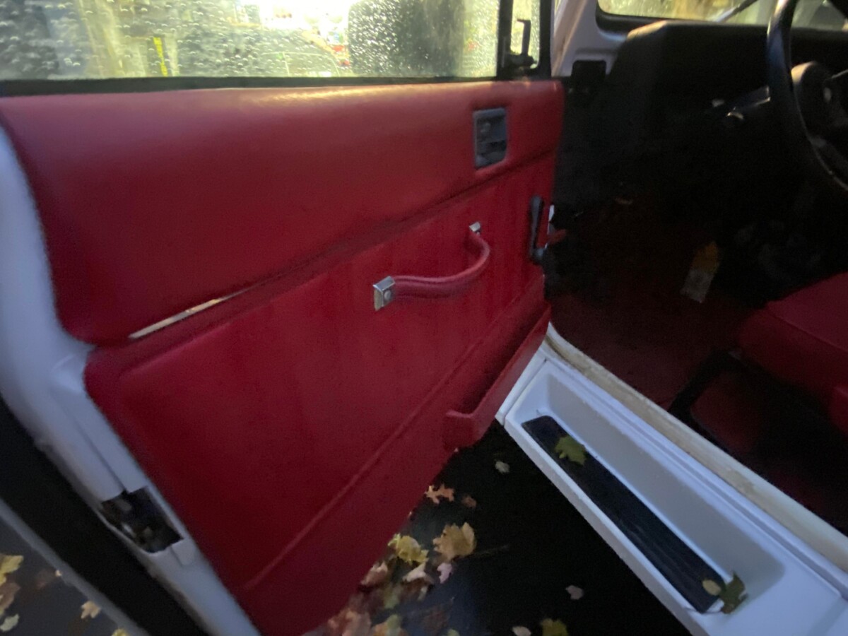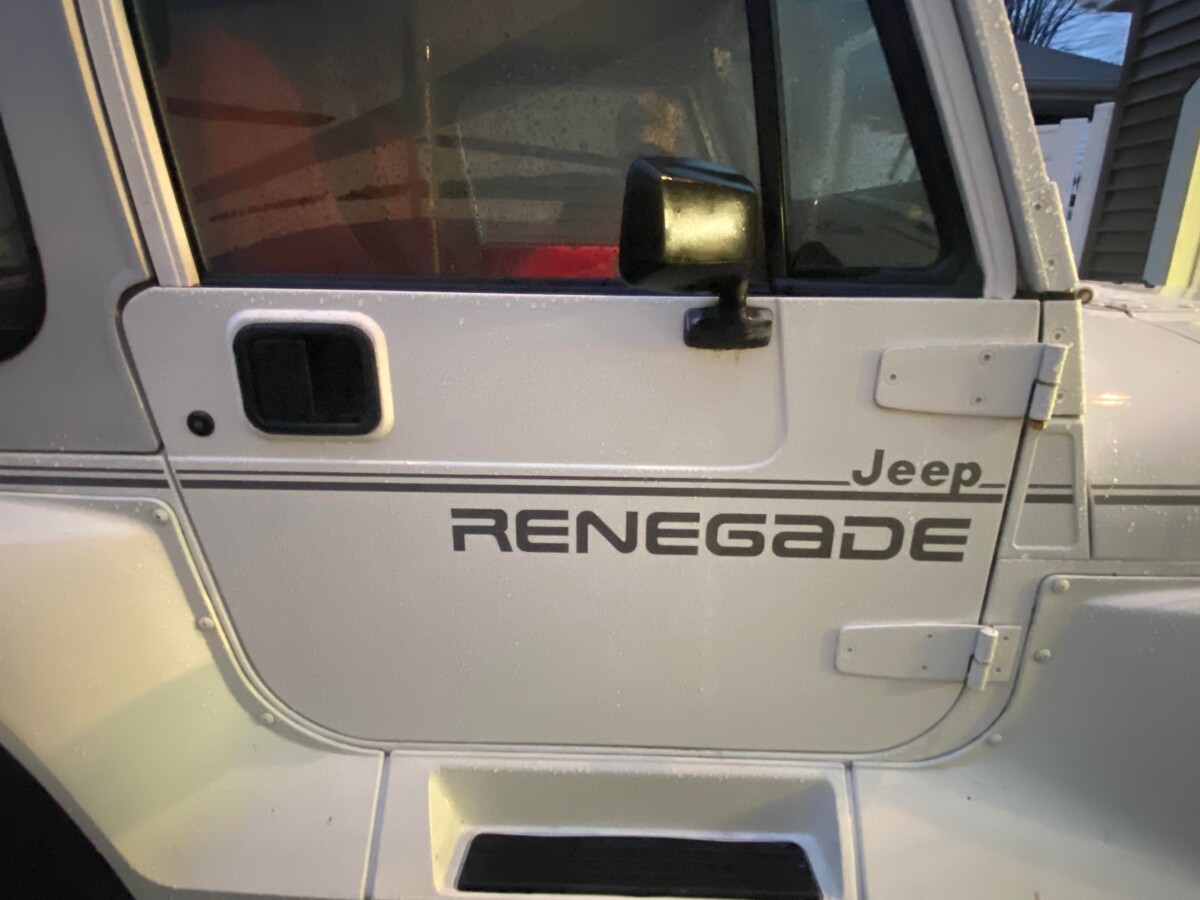 Tonight, I had the chance to check out a potential motorcycle project but what I found at the seller’s house was way better than an old crotch-rocket. The owner of the bike had a gorgeous 1993 Jeep Wrangler Renegade edition featuring the exceedingly rare combination of a red Trail Cloth interior with a white exterior. Mileage is under 100,000 and aside from the need for a replacement windshield frame, this is a time-warp specimen that is among the best I’ve seen anytime recently. I told the seller I would post it up here to get it some eyeballs and I’m happy to answer any questions I can or connect you directly to the owner.