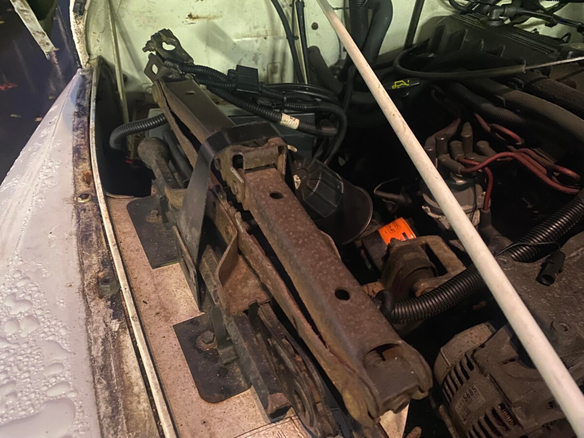The four – the AMC four, not the Iron Duke or Audi engines that preceeded home-grown AMC – it’s plenty powerful, reasonably economical (18mpg with a manual). And – the capper – with the YJ, the four-cylinder was pushed all the way back in the engine bay. Leaving a wide gap forward…and giving you a view of the front axle, forward of that four.