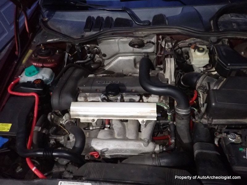 The performance bits include drilled/slotted rotors, IPD calipers, upgraded projector headlights and 110W high beams, the cat is an IPD upgrade and the rest of the exhaust came from Viva Performance ( stainless, 3″ diameter from the cat back to the dual mufflers, the outlets are 2.5″), the air filter is a K&N style, oilable filter from IPD (it comes in Volvo blue as opposed to red) and many of the hoses under the hood are silicon IPD upgrades.