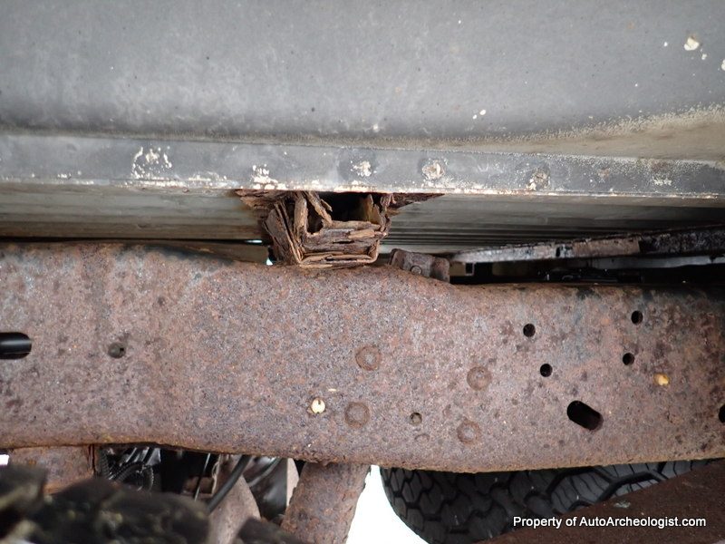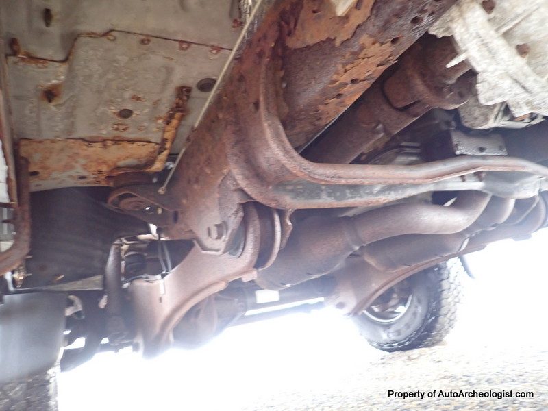 Underneath, the truck reflects its New England background. The seller notes typical surface rust on the frame along with heavier corrosion on certain components such as inner bed rails and front spring brackets. These areas are described as serviceable for now but likely needing attention down the line.