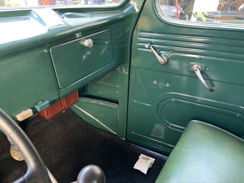 I don’t believe this is an original truck, It’s been restored. Looking at the closeup photo of the serial number plate on the firewall, I can see remnants of rust pitting under the paint. [Probably sand blasted, then primed, but no effort to fill in the rust pitting.] These trucks never came from the factory with prior rust under the paint!