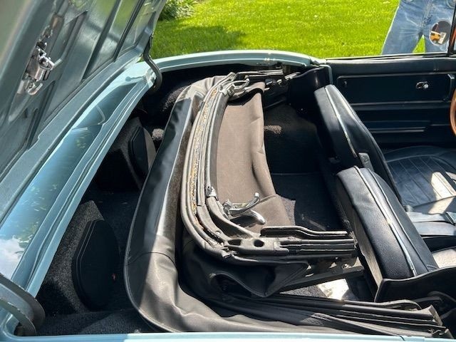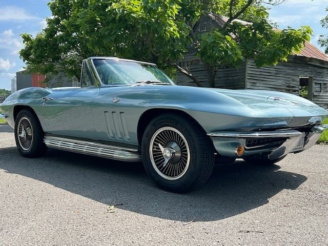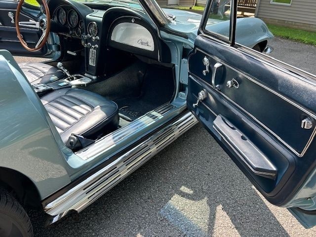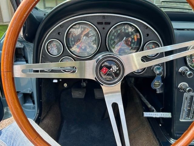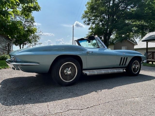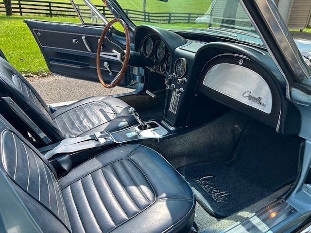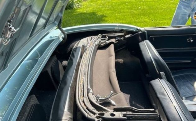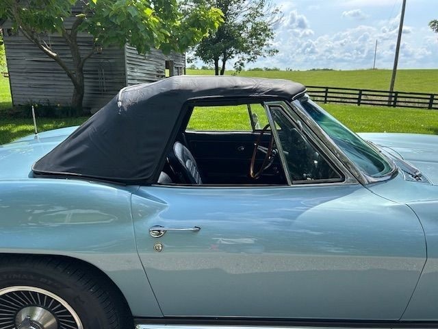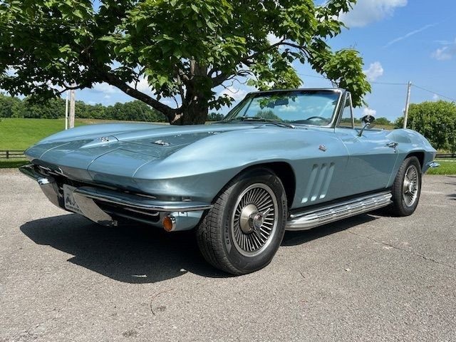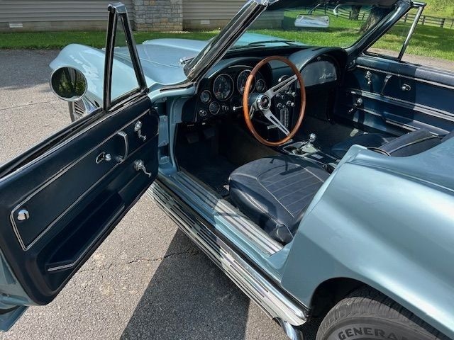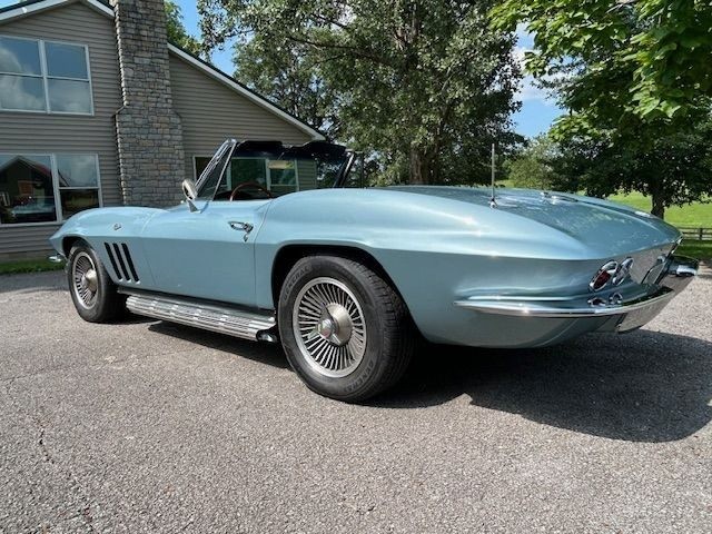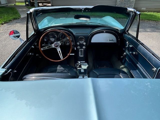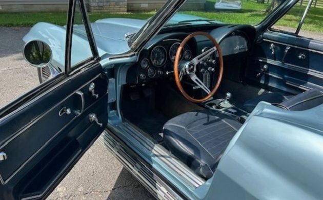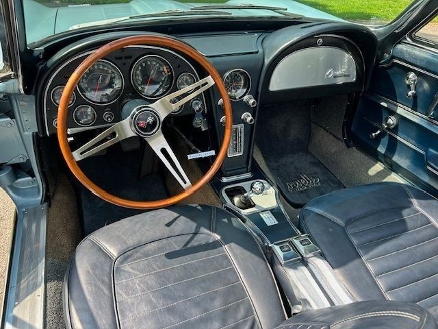 While the restoration stayed close to stock, a few desirable upgrades were added, including a side-exit exhaust system and bolt-on knockoff wheels—both popular options in 1966 that give the Corvette a sportier, more aggressive look. The black convertible top pairs nicely with the Trophy Blue finish, and the car’s overall condition suggests it has been well cared for since its restoration.