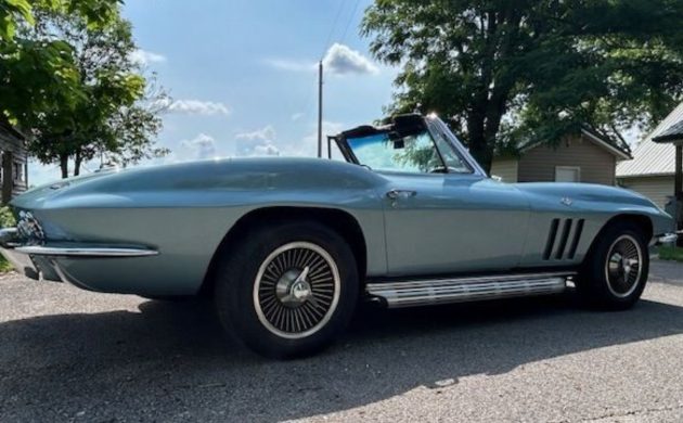 This 1966 Chevrolet Corvette convertible is a well-restored C2 with its matching-numbers 327 V8 and four-speed manual transmission. Finished in Trophy Blue with a Dark Blue interior and a black soft top, this Sting Ray has undergone a frame-on restoration and now shows in excellent condition. Located in Cynthiana, Kentucky, it’s being offered here on Barn Finds. With tasteful period upgrades and plenty of included extras, this Corvette is ready to be driven, shown, or simply enjoyed.
