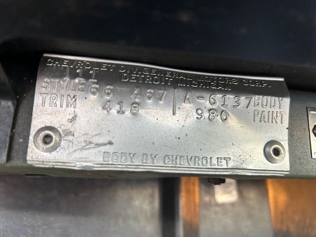Included with the sale are several extra parts: a rebuilt carburetor, a water pump, various electrical components, and the original rims and covers should the next owner want to return it to a more factory-correct appearance. The clean title and VIN (194676S119626) are listed, along with the rear axle ID (AM4466), body build date (I11), and body number (A-6137), which further confirm the car’s originality.