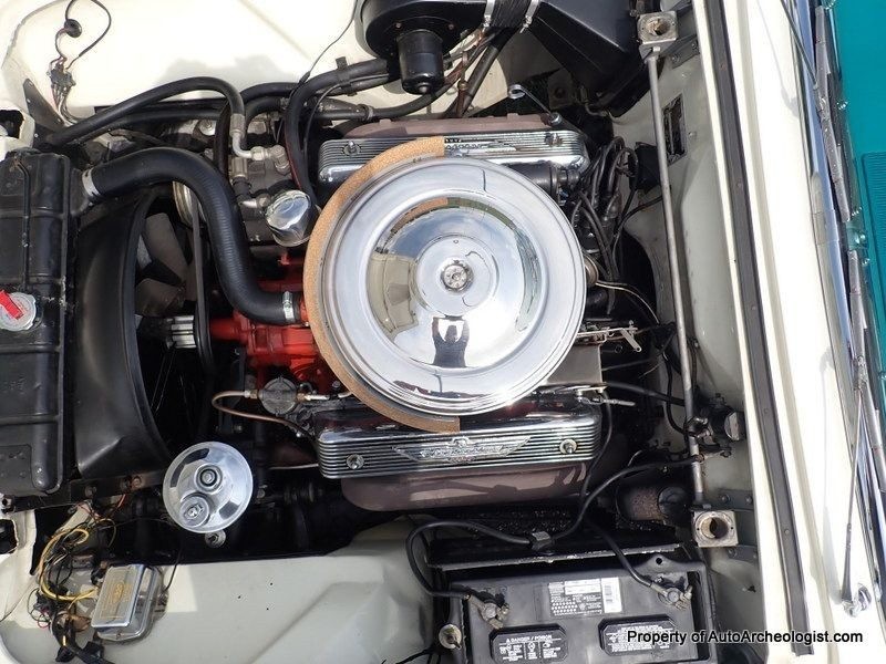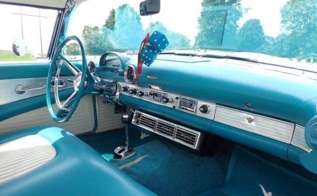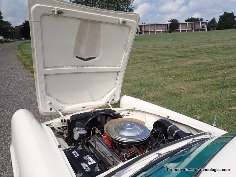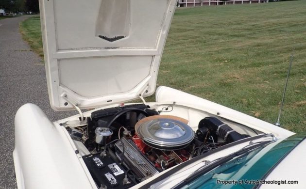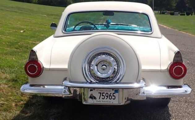 Originally a Texas car before moving north to Connecticut in 2004, this T-Bird underwent a body-off restoration in 1994, including a rebuild of its 312 cubic-inch V8. At that time, the interior was redone in turquoise and white rather than the original red, a choice that gives it a distinctive, eye-catching look that complements the Colonial White exterior.