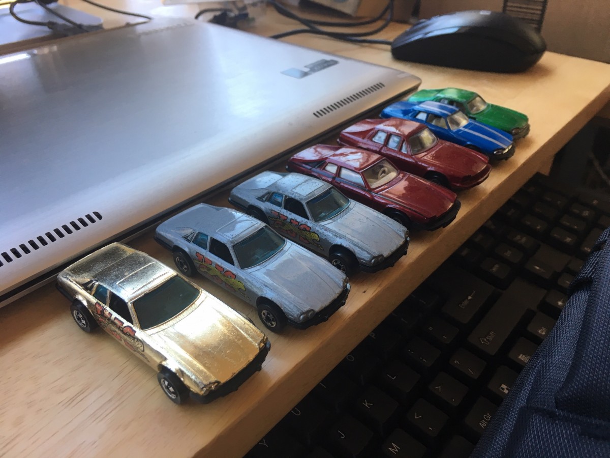 Because it took me a while to be able to leave work for a few days, I was able to start my collection of mini-XJSs as I do for every car we own. Does anyone else do this? I include Aurora Thunderjet vintage HO scale slot cars as one of my hobbies and it is my hope to eventually cast a few XJS bodies for my home track from one of these. The small red one third from the top with the incorrect door pillars is close to the correct size. Anyone else still into slot cars?