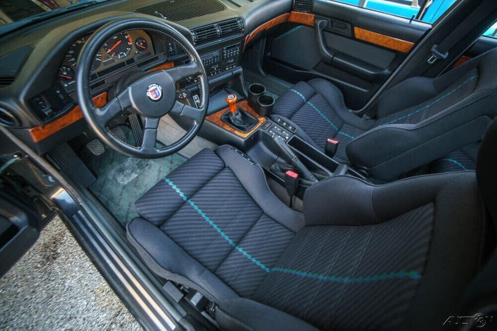 The other Alpina goodies are the things that BMW nuts salivate over, including the deeply-bolstered Recaro seats with the iconic Alpina upholstery; Alpina steering wheel and shift knob; Alpina multi-spoke alloy wheels; self-leveling suspension; upgraded 13-inch brakes; Zender and AC Schnitzer body enhancements, including side skirts, rear apron, and front air dam; and an Alpina decal kit (that has been removed in this instance for paint correction; a new replacement set of decals is included with the sale.) The B10 has 62,000 miles on it and was originally a demonstrator car sold new in Europe before going to Japan and eventually to the United States.
