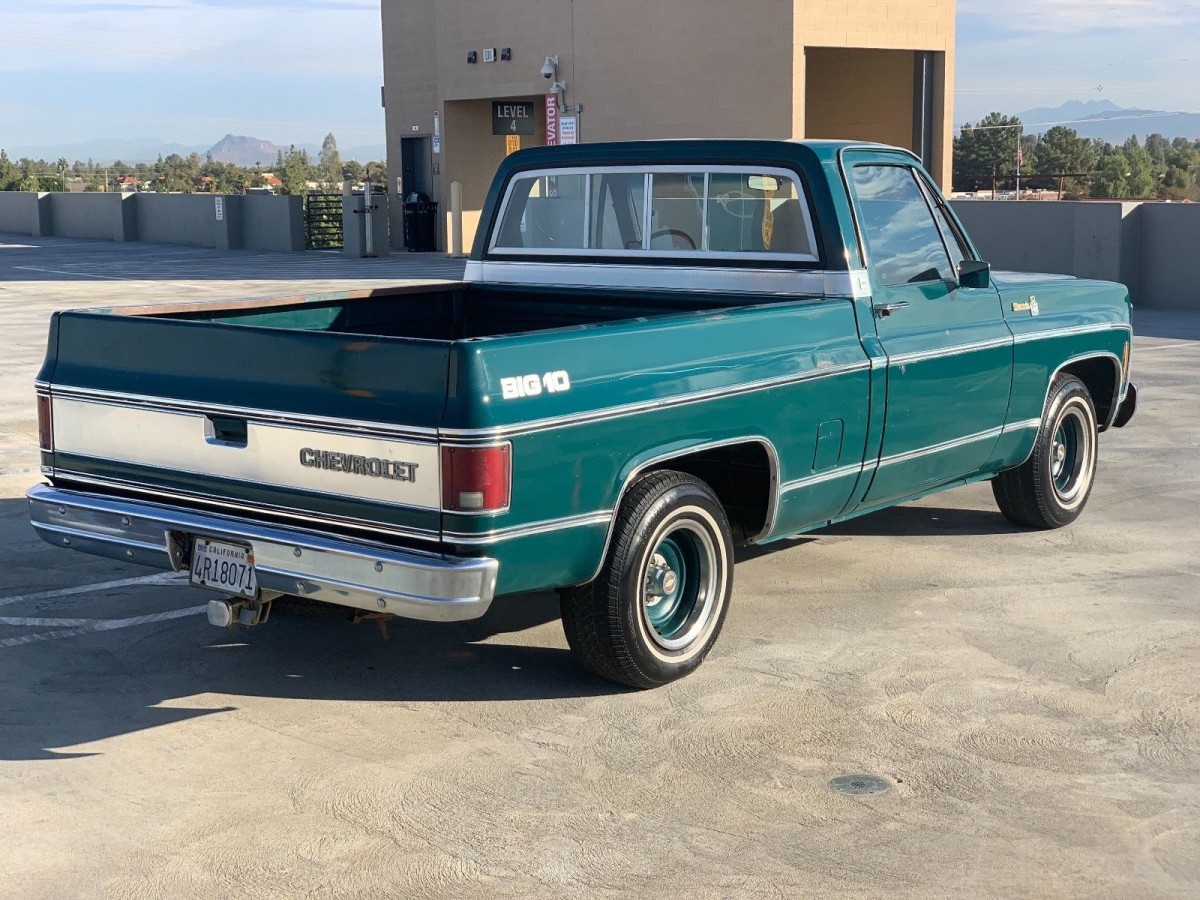 The Big 10 was still a good deal if you wanted a full sized pickup with a little more capacity and capability. Enhancements were made to the brakes, springs, and tires to bring the weight rating up. These trucks were also equipped with a 12 bolt rear end and five lug wheels to round out the package. Nowadays, extras in these areas are usually part of a trailer towing package. The truck we see here also brings a 350 cubic inch engine, a TH400 automatic transmission, and air conditioning to the table. It is also outfitted with the Silverado package. Quite the truck.