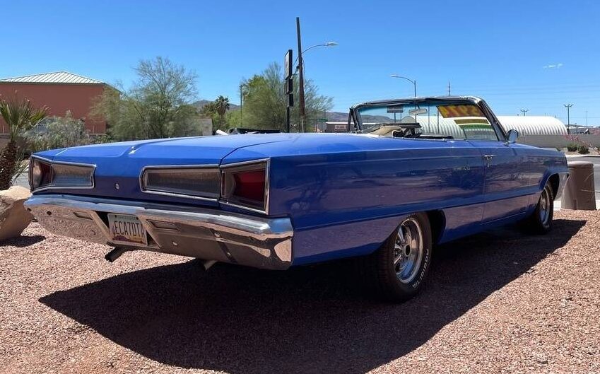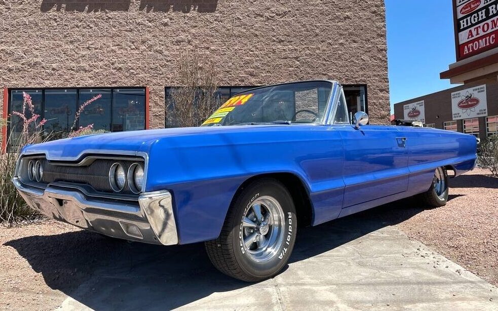 Now here’s one you don’t see every day, a 1966 Dodge Polara convertible. We haven’t covered too many Polaras from this era and I believe this may be the first convertible version to grace our pages. It could be a Polara 500, or maybe it’s just a standard Polara, it’s hard to say at this point – more on that to follow. There’s no mistaking that bright blue finish, which I’m certain wasn’t part of Dodge’s palette in ’66 but it looks good so let’s check it out. Found in Henderson, Nevada, this Dodge drop-top is available, here on craigslist for $14,980.