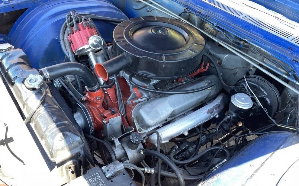Some of the specific model confusion is brought about by the removal of all the nameplates and badges. That said, the shaving appears to have been well executed. The very blue hue is probably not one that I would have picked from a swatch but this long, stretched-out convertible wears it well. The chrome is still bright and there’s no sign of rust or crash damage. There are a few included images of the underside and it all presents exceptionally well – it’s very sound looking. The mileage reading of 70K miles seems believable though there’s no claim of authenticity to that recording. And of course, the Cragar S/S wheels will perk up the appearance of just about anything on wheels. As for the folding top, just one image is included and it’s not too detailed so that’s another item for further investigation. The only styling cue that keeps me on the fence with this Polara is the eyebrow-styled taillights – they are distinctive, I’ll give Dodge that!