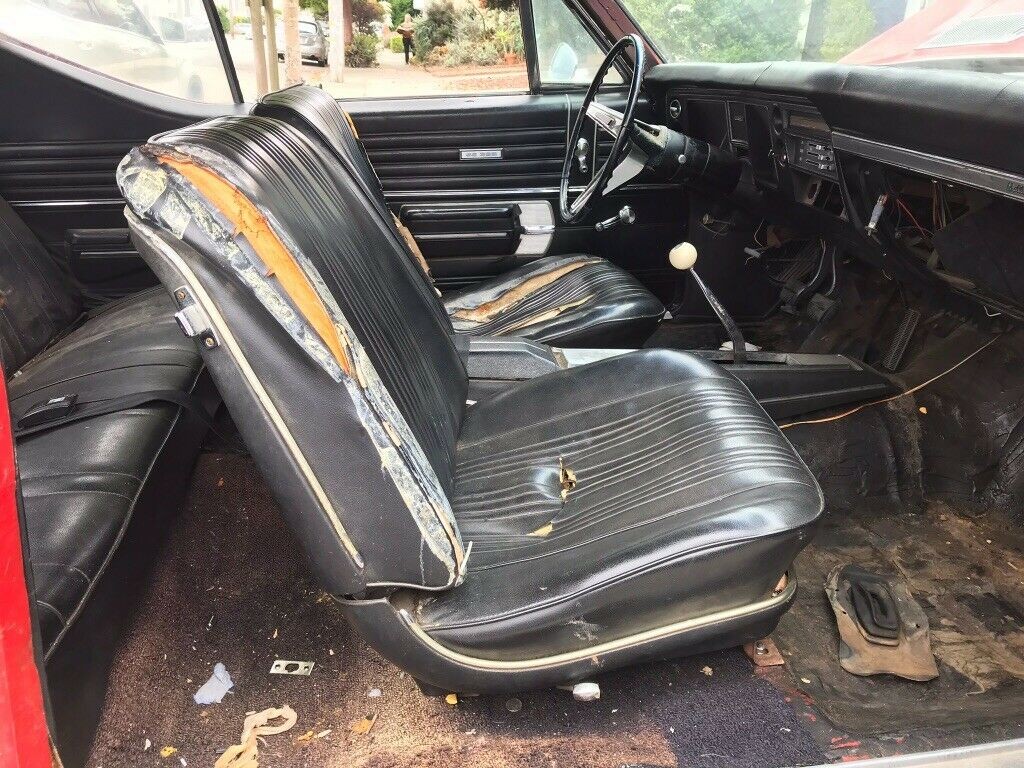 I said that the Chevelle was solid, and this appears to be no idle boast. There is a spot of rust present above the rear wheel arch on the driver’s side and a small spot in the bottom of the fender. Apart from those two small areas, which could be repaired with patches rather than replacing either panel, the rest of the car is said to be solid, including the frame and all of the floors. The driver’s door has been replaced at some point, and the car underwent a repaint in its original Matador Red back in 1988. The chrome, trim, and glass all look good, so this is looking like a relatively straightforward restoration project at this stage.