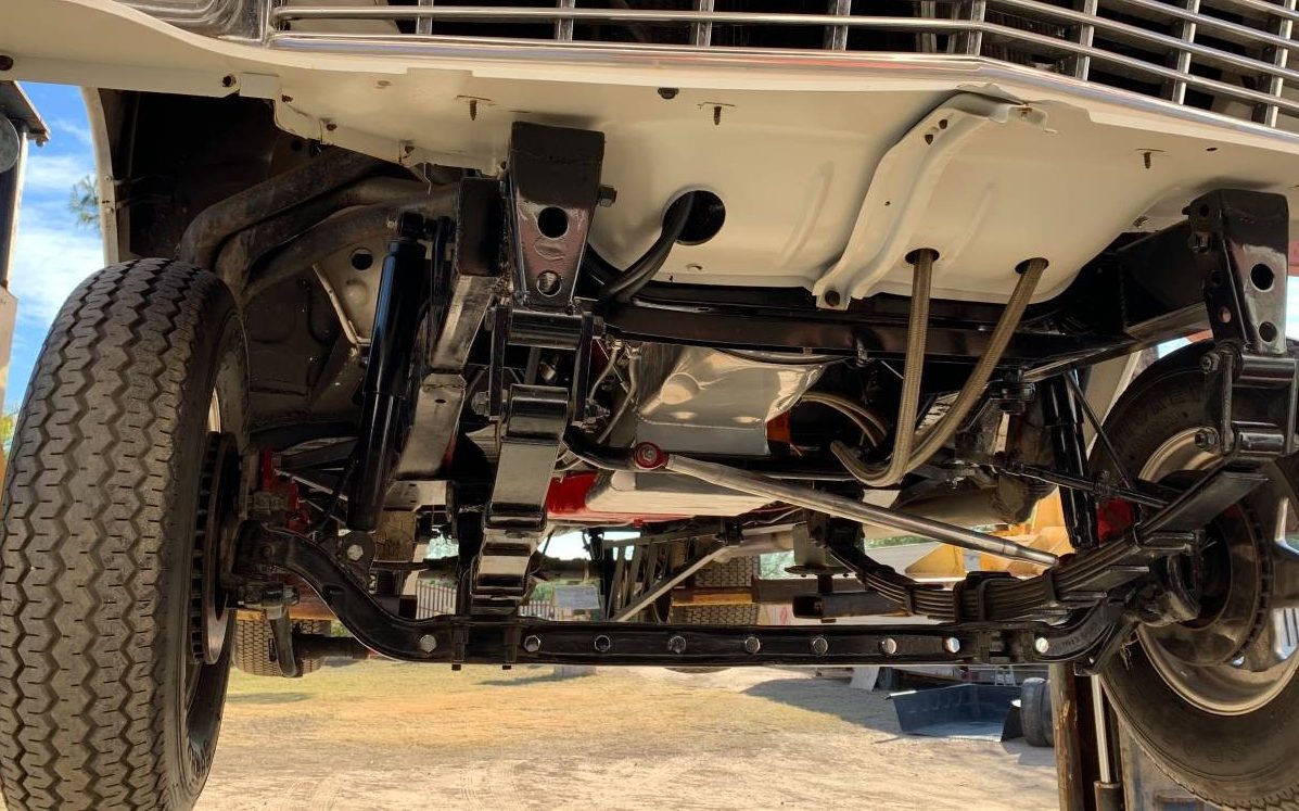 Ten bolt, 3.73 gearing, turbo 350,, all behind 496 cubic inches of raw big block power. Not the set up I’d expect even for serious street work. But hey, it does look awful menacing.