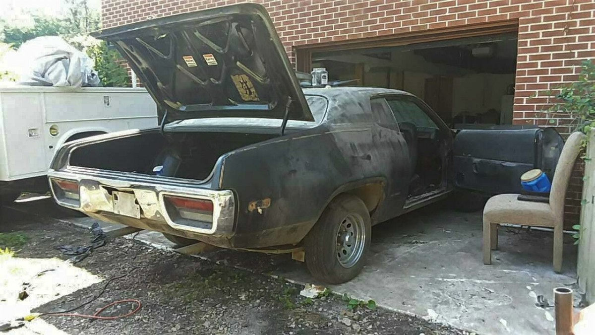 A chart breaking down what engine and transmission combinations were produced in 1972 is included in the ad. This car has been stored in a garage since 1980. The seller has no time for this project and is selling it for that reason. It does come with a clean title, so it’s not a parts car. There were plans to strip the paint, which was started but never completed. The front bumper and several trim pieces were removed. The Road Runner originally had a black vinyl top, making it a triple black car.