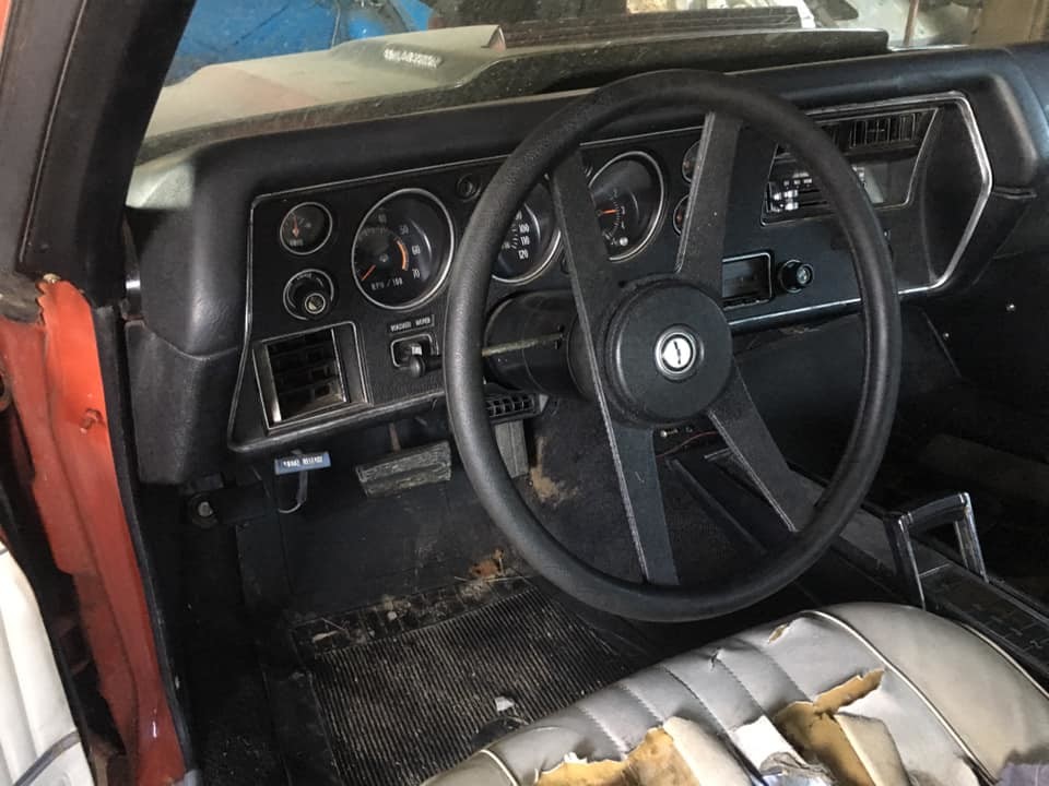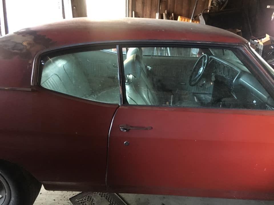The Chevelle is finished in Cranberry Red, and there is some evidence to suggest that it was also originally fitted with a vinyl top. Vehicles finished in Cranberry were only available with vinyl in either black or white, but given the color of the interior trim, I tend to think that this car probably wore white. There is some slight rust visible in the supplied photos, but given the quality of these photos, it is difficult to draw a firm conclusion on just how extensive this might be. The owner does state that the Chevelle has little rust, which does give us cause to be at least cautiously optimistic. This vehicle is 1-of-3,659 Chevelles to roll off the production line in 1972 fitted with the cowl induction hood, and it appears that this might be complete. Under the layer of dust, we can see that the car is fitted with tinted glass, and this all looks like it might be in good condition.