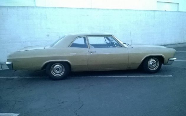 True to its roots as the working man’s full-size, this 1966 Chevrolet Biscayne here on craigslist in Costa Mesa, California wears minimal chrome, tired paint, and dog-dish hubcaps on body-color steel wheels. Stop there and this would be another ho-hum Grandma car, parked in a garage so small you have to turn sideways to get in, with a tissue box on the package shelf. However, this street-fighter packs a 396 cid big-block, a Muncie M21 four-speed, and a host of high-performance upgrades. Thanks to Rocco B. for spotting this base-model brawler. Only the stance and fat rear tires warn posers that this ’66 packs a wicked right hook.