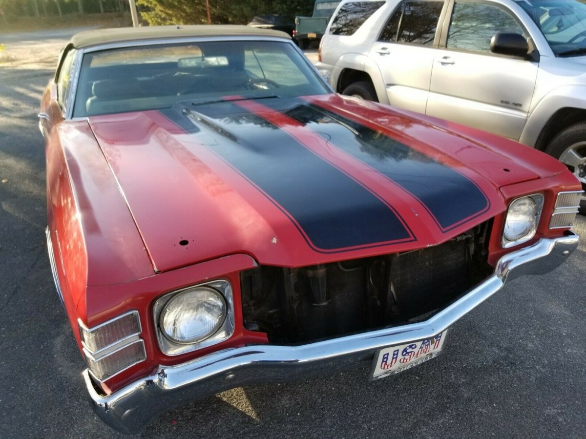 The most noticeable change on the Chevelle in 1971 was the use of two single-beam headlights rather than duals. And the recessed-in-the-bumper taillights became two concave ovals rather than square. The SS that year, which was based on a Malibu, used a 350 cubic inch V8 as its standard powerplant. The seller’s car has the appearance of a true SS, but it’s not. It may have started as a Malibu convertible with a 350 that was rebadged before the seller acquired the car.