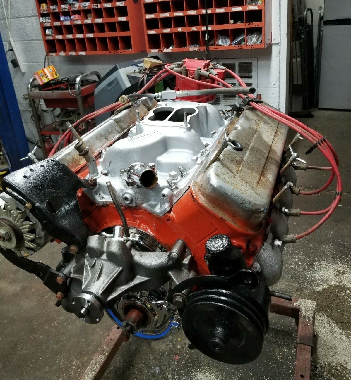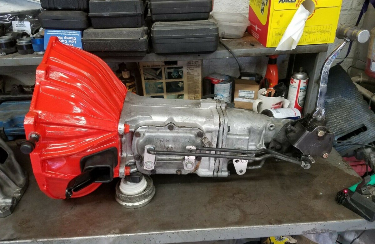 This clone or tribute is for sale because the seller is unable to complete the project due to an injury. The photos provided show the vehicle in different stages, but not necessarily in sequential order. One photo shows a rather messy but complete engine compartment, which other photos are of an engine block, transmission, and other components separately and then together. So, reading between the lines we believe the seller pulled the original engine and tranny, started building a big-block (396 or 454?) and 4-speed transmission, and paused before putting the new stuff back into the car.