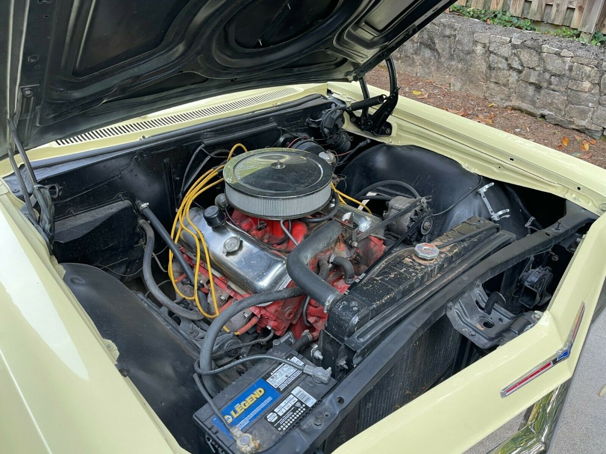 Overall this is a very attractive car. A NOM, a repaint, and a complete lack of wear suggest the interior is not original. What the seller means by the replacement engine being ‘period correct’ is unknown. The 396 was in production for 8 model years and rated from 265 to 425 horsepower. While looking at the engine image I noticed the single heater hose which rests on the exhaust manifold.