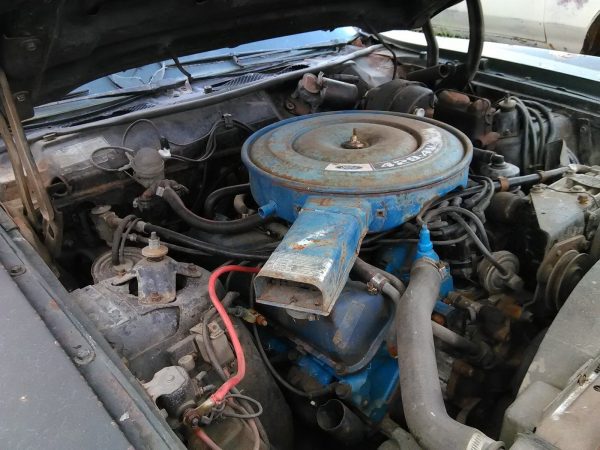 Though a 220 horsepower two-barrel 302 Windsor V8 was standard, as previously mentioned this Ranchero GT is fitted with the optional N-Code 429 4-V Thunder-Jet V8. Rated at 360 horsepower and 480 lb-ft of torque, the 429 Thunder-Jet features 10.5:1 compression (compared to the 429 CJ and SCJ’s 11.3:1 compression) and is topped by an Autolite 605 CFM four-barrel carburetor. As previously mentioned, the 429 Thunder-Jet in this Ranchero GT is backed by the C6 three-speed automatic the engine is said to have previously run, but the transmission was inoperable according to the seller and the engine is believed to missing its oil pump. I would fix the transmission, source a correct oil pump, get the engine running again, and detail the engine and drivetrain, leaving it unrestored.