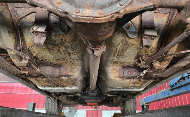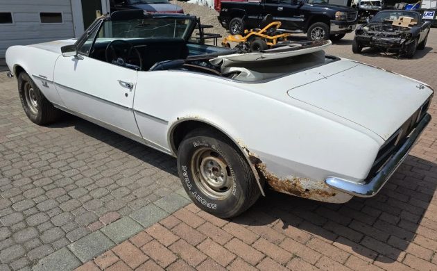 Nothing here says “too-far-gone rust bucket,” but that left quarter panel and others require new metal. One picture shows the white top in place, but don’t count on salvaging it. No worries, though; any buyer who validates the seller’s claims won’t mind opening their wallet for a proper restoration.