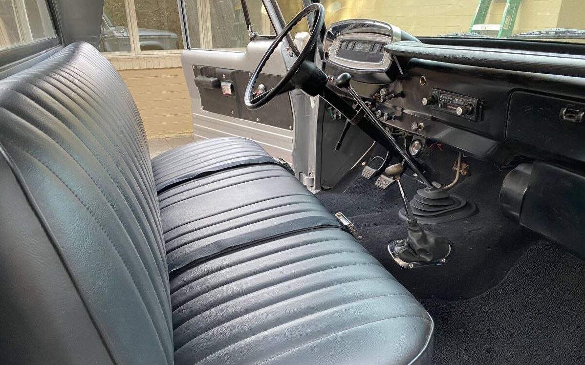 The star of the show is in the cab, an environment that is considerably better photographed than any other aspect of this truck. Nice looking black vinyl upholstery blends right in with new black loop carpeting. It all maintains a stock vibe with the original machine-turned instrument panel, clear gauges, and original, non-split steering wheel. There appears to be a modern radio in place, more modern than 1968, but that’s the only interior nod to modernity.