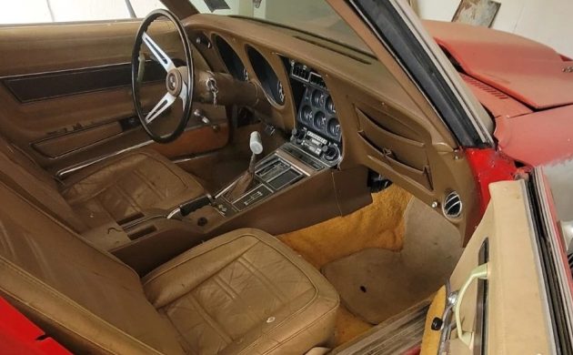 Tilting this Corvette’s hood forward reveals a big-block, although it isn’t the 427ci unit that occupied this spot when the car left the factory. The seller describes it as “a late 60s/early 70s” 454ci powerplant. This quote can only be partially accurate because Chevrolet increased the big-block’s capacity in 1970. The ‘Vette also features a four-speed manual transmission and power brakes. The seller confirms that this classic hasn’t been in active service since around 1990 and that the V8 is locked. We can only speculate whether a dose of Mystery Oil would be enough to loosen the motor, but budgeting for a rebuild as part of the vehicle’s restoration would be wise.