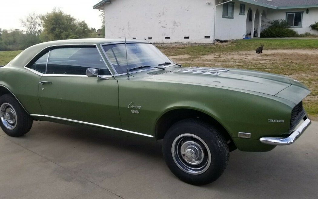 There are tell tale signs which 396 variant it could have came with. # and diameter of Fuel lines, tach redline, possibly the Munci trans ratio and more…either way, this Camaro appears to be in decent shape and it’s British Racing Green. Will make a solid Resto project.