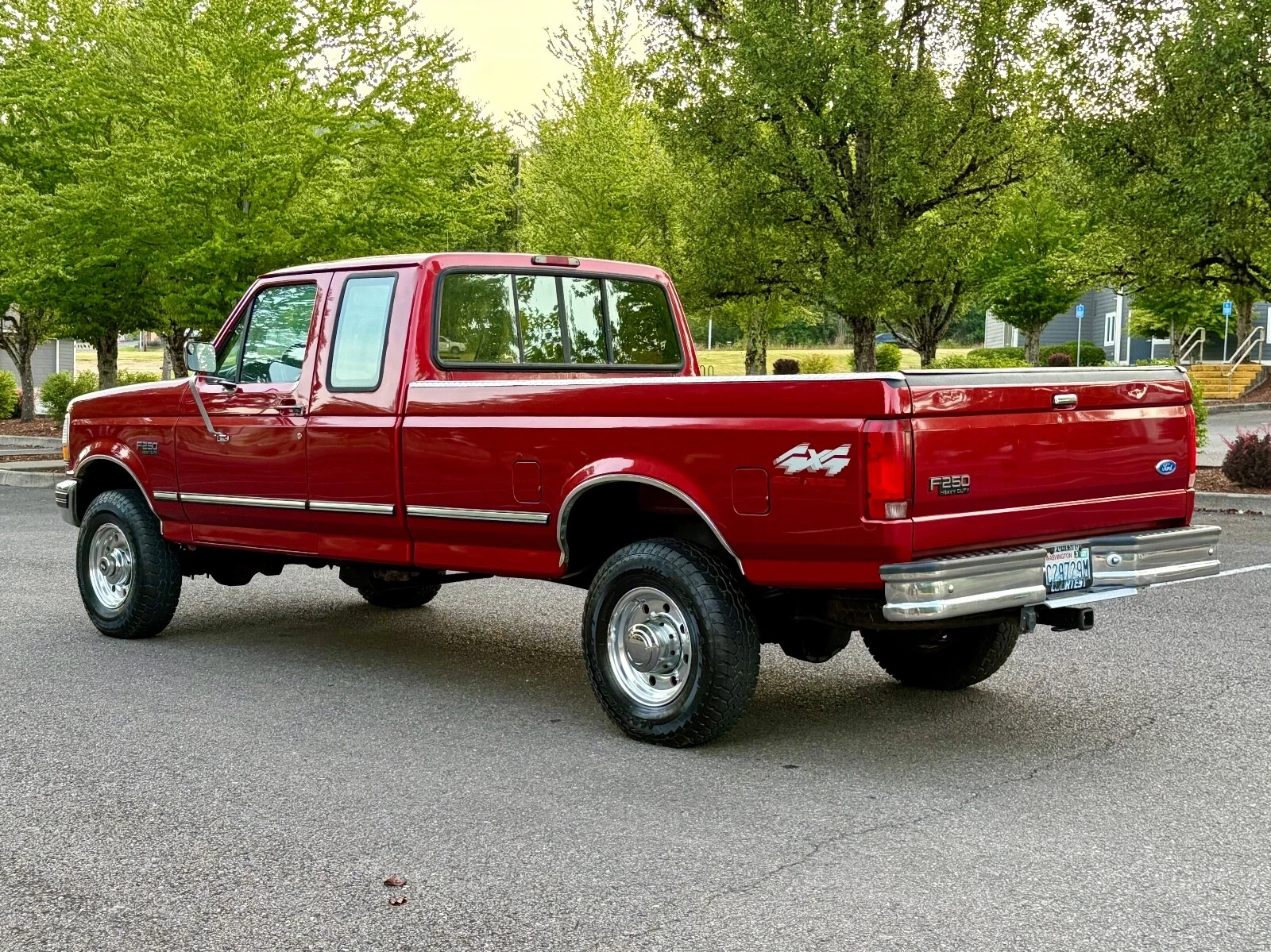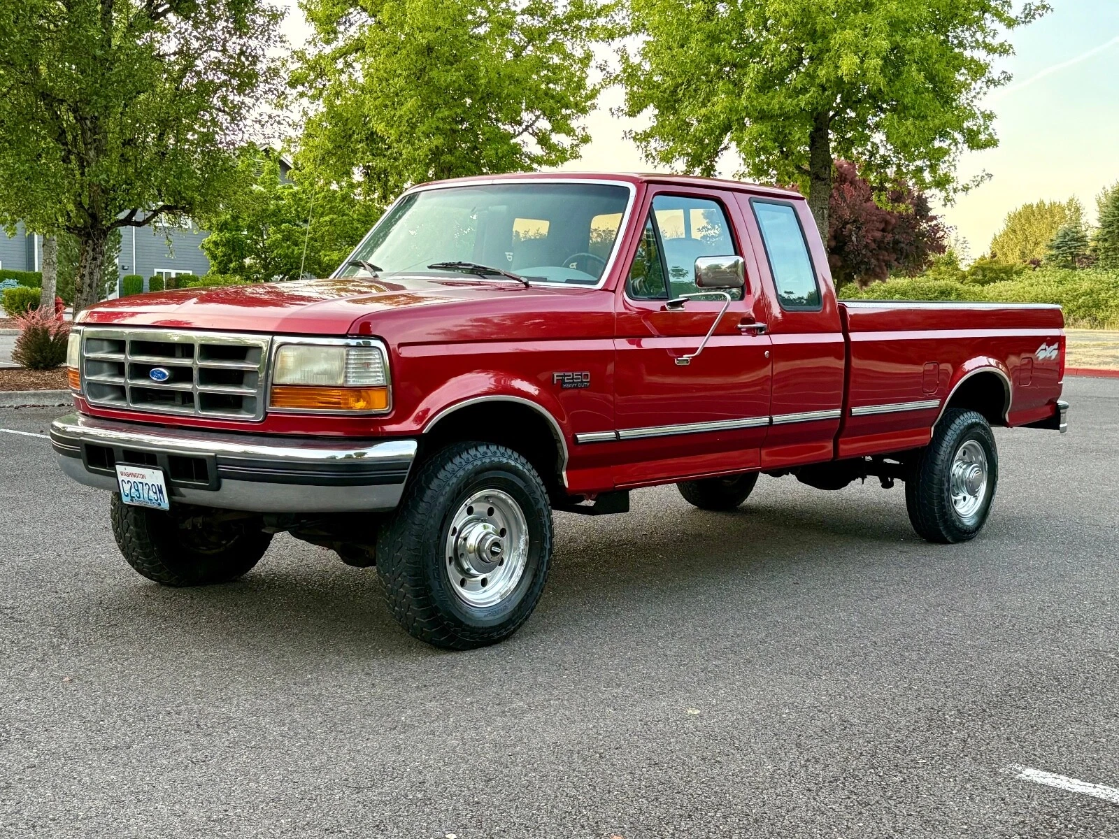 This F-250 features the extended cab and the long bed, and I really can’t get over how clean the bodywork is. I was expecting to see a mention of a respray in the listing, but the seller provides a detailed overview and doesn’t talk about paintwork, so I’m going to assume this is an original finish. The “4×4” graphics look correct, too, so that’s another possible indication if it never being stripped down for paint. The truck is well-optioned, with the Heavy Duty / XLT packages, towing mirrors, manual locking hubs, and full power options inside the cabin. The factory 16-inch wheels fit the truck perfectly, in my opinion.