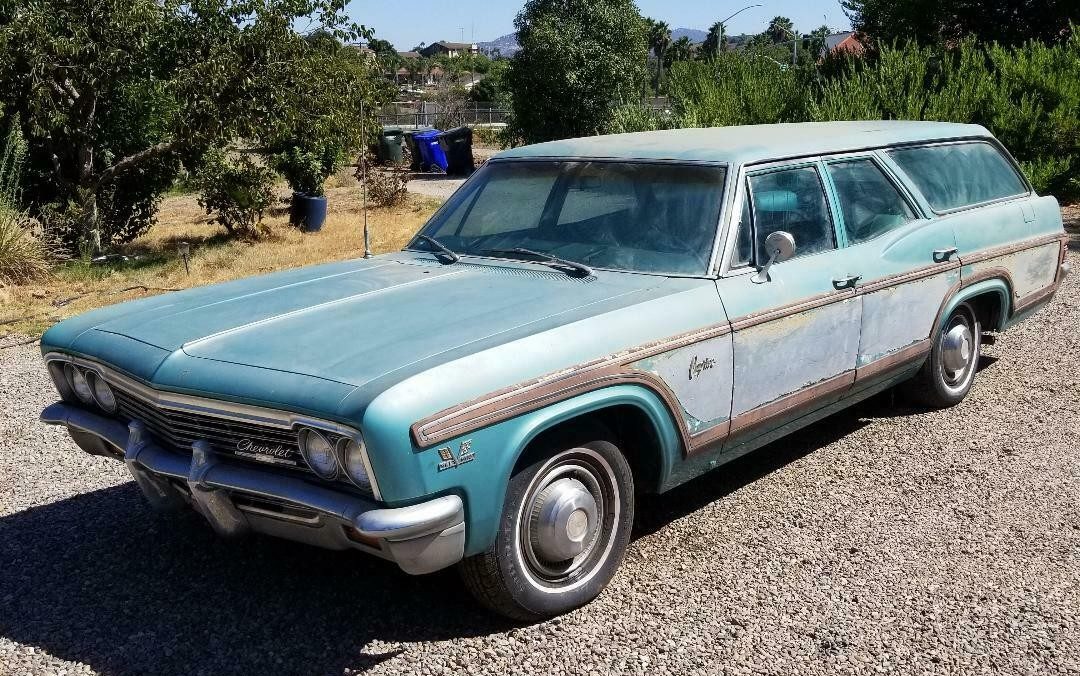 Two adults, two kids, two more kids, two dogs, two 4×8 sheets of plywood, and more… all are welcome in the faithful full-sized wagon, the ark of middle America. This 1966 Chevrolet Caprice Wagon in San Diego, California looks fairly solid, and it runs and drives! Though it needs some work to be completely trustworthy, this Caprice is well on its way to serving a new family, and interested parties can visit the listing here on eBay and make an offer or click Buy It Now for $9500.