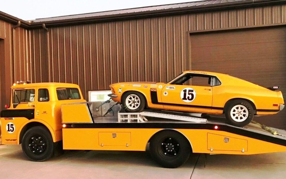 Nearly every BarnFinds.com reader has played with MatchBox cars or similar die-cast metal miniatures. Manufacturers of the tiny tribute cars offered numerous combinations of racers with matching transporter trucks. Few of us collect real cars like Matchboxes, but if you do, first off, you have my eternal jealousy, and second, this might be you lucky day! This 1970 Ford Boss 302 Mustang and C8000 Cab-Over Transport Truck in Winfield, Kansas come to market here on eBay, where bidding has eased past $50,000 without meeting the reserve. While not an authentic Parnelli Jones-driven race-car, the genuine Boss 302’s tribute goes far beyond paint stripes. Built in consultation with Bud Moore, the Boss Mustang and its engine follow race preparations of the day including an engine rebuilt by Smokey Yunick‘s California machine shop. Les Werling participated in the build as well.