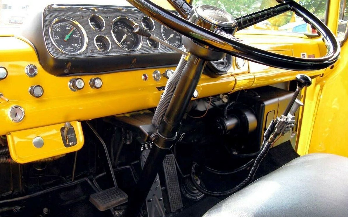Love the combo, but wonder what has been to the truck to make it more driveable? In my youth I drove a lot of miles in a flatbed version of this delivering lumber and it was utilitarian at best. 55 max, noisy, hot and jarring when empty. The norm for the day, but not something I would like spending hours in anymore, even with a big engine.