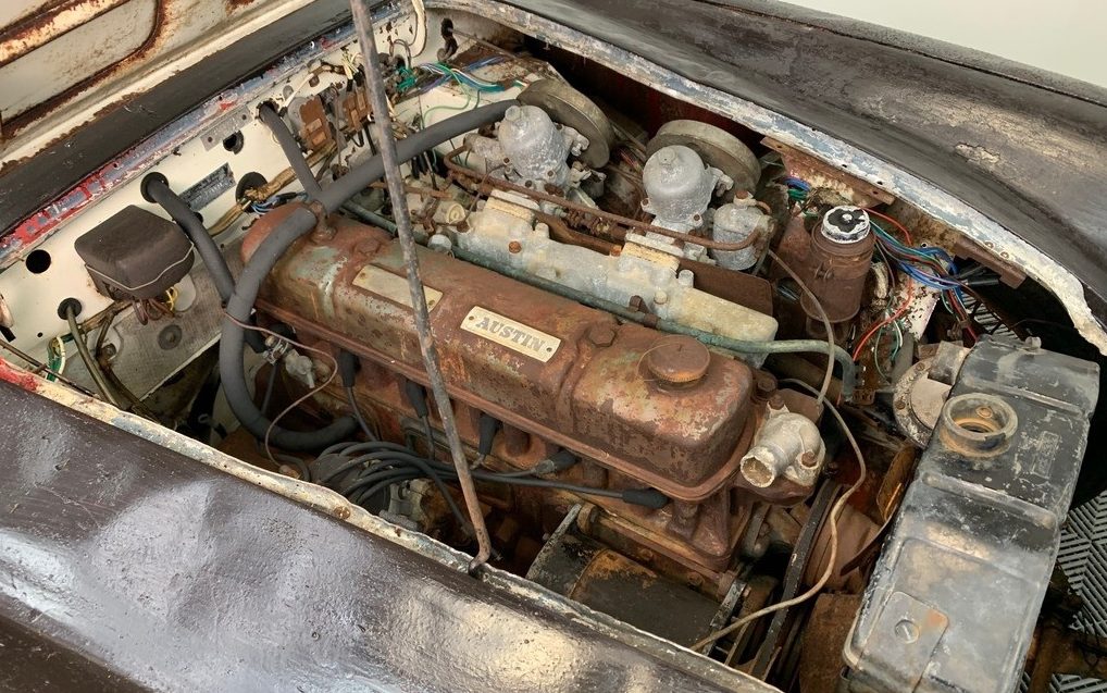 What we do know is that Austin Healey 3000 was manufactured in Abington, England by a combination of Jensen and British Motor Corporation (BMC) between 1959 and 1967. They were built as either a two-seat sports car or a 2+2. Powering this Austin Healey 3000 is a 2.9 liter, inline six-cylinder engine generating 132 HP. Backing up the engine is a four speed manual transmission with overdrive. Considering the 2,900 lb. curb weight, these AH 3000’s move along in style. The seller states that the engine is all there, all original and turns over by hand; it does not run however. I would be concerned about the wiring!