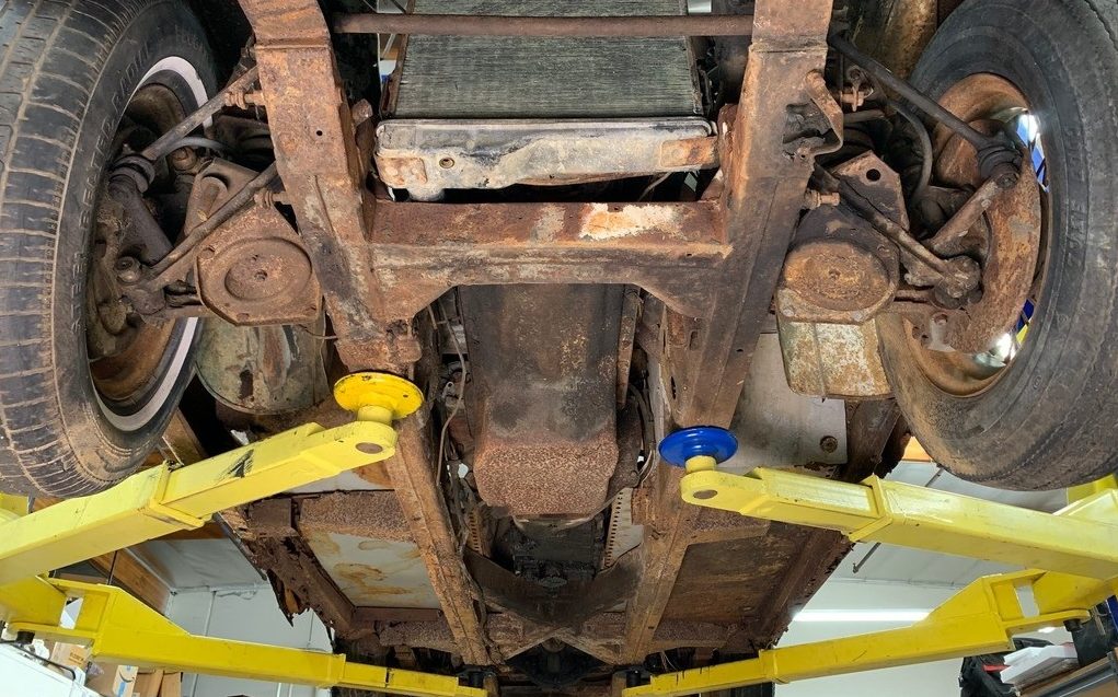 Moving on to the integrity of the car, the owner states that the frame rails and “cross X” are all solid though there was a RH side frame repair performed in the past. Repaired floors have been done too though apparently, they are amateur in nature. From what the image reveals, the frame does appear to be sound.