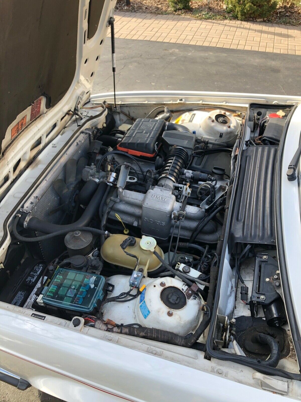 The interior features standard issue seats in a great color, and it looks to be incredibly well preserved. This, to my mind, is the preferred shade of red you want to find in an E24, as the other color – known as Cherry – is a bit in-your-face by comparison. The backseat is in similar condition, and contrasting black carpets show no apparent issues. The 6-Series also has the preferred three-spoke sport steering wheel, and listing photos show an uncracked dash and clean carpets in the trunk. No other major modifications are noted inside the car, but it’s worth noting the 6-Series does ride on aftermarket wheels that are clearly larger than stock.
