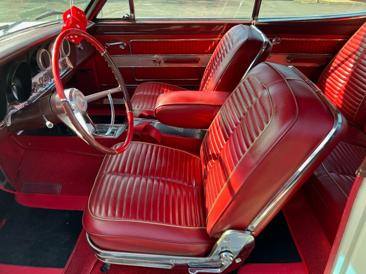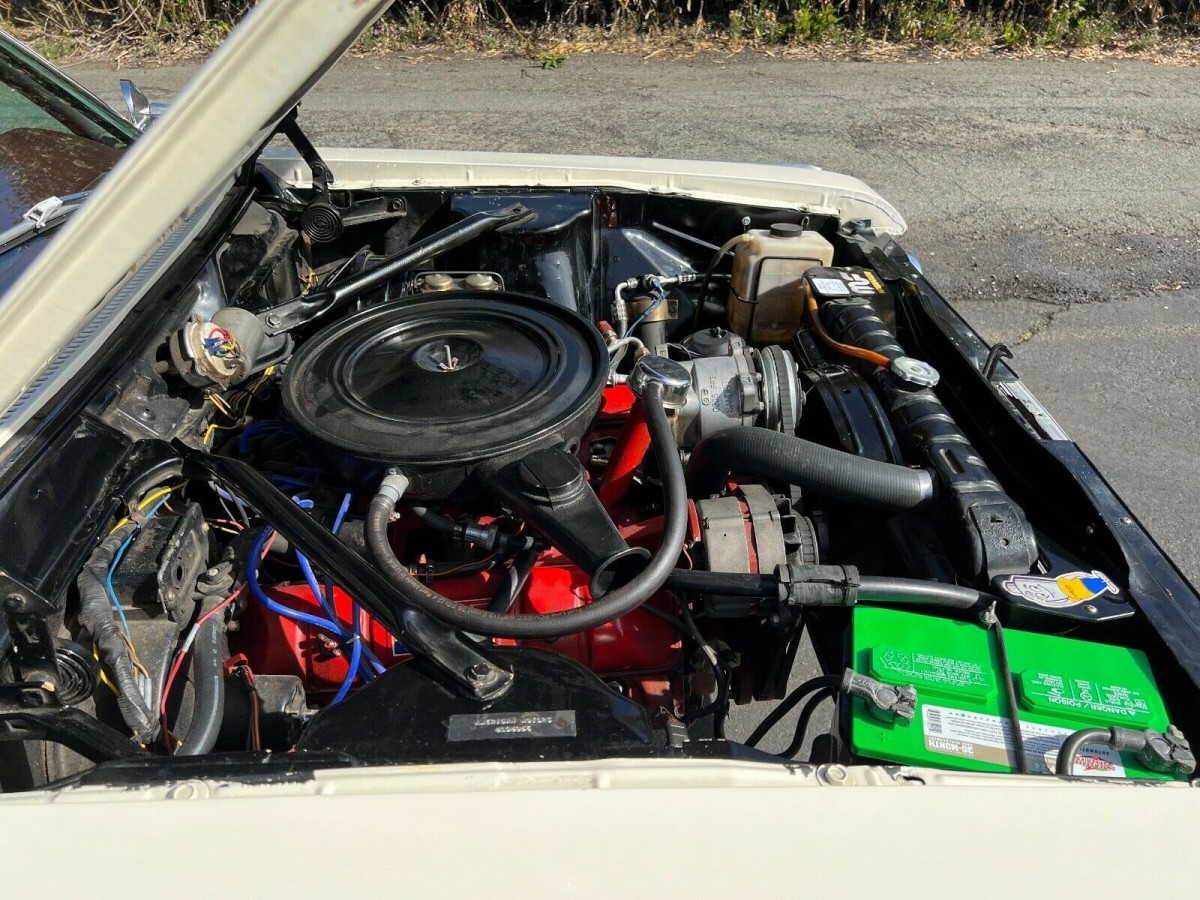 This “Big Fish” as the Marlins were sometimes called has been a California car for the past 57 years, garaged when not in use (129,000 miles). It wears a stunning dark red/burgundy and white paint job which the seller rates as an 8 on a scale of 10. There is a small rust bubble at the bottom of one fender and a slight crease along the passenger side of the car, but otherwise, it looks stellar. The interior is perhaps even more impressive. Everything in the passenger compartment is nearly perfect, though the AM radio doesn’t work.
