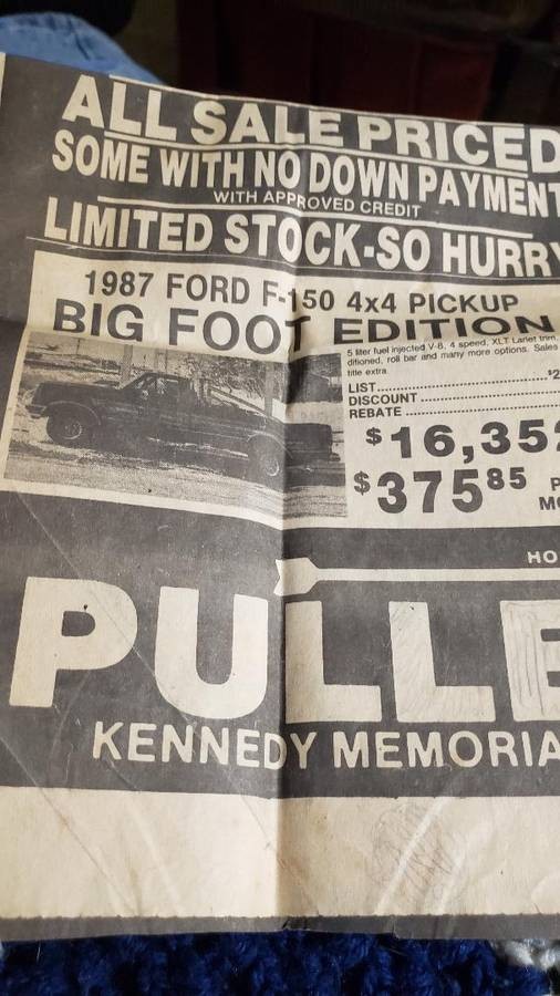 I remember going to the dealership with my dad when he got his 87 F250 and saw the Bigfoot edition. I wanted him to get it but he wanted a F250 and they didn’t have a F250 Bigfoot edition. I was 11 at the time
