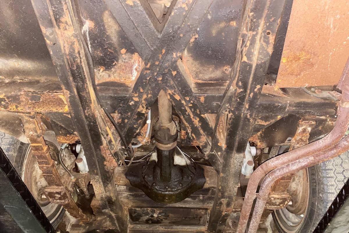 This outrigger has rotted nearly clean through–good clue she’s a PA car, all right. Annual inspections of cars in PA look for frame damage and rotten floor pans, so would there be a question of whether this condition could pass PA inspection? Not really, because antique cars are exempt from PA inspection–just sayin’. Although it is not a complicated project for an experienced welder/fabricator, there are some bucks involved in repairs for safety and restoration reasons. Can’t tell you about the rest of the channels and steel from the remaining photos, so a thorough inspection should be done. Would there be some concern if that leaf spring terminates on or near that outrigger? The rest of the trunk floors and other sheet metal look solid enough–the seller has provided numerous pictures with a promise that he has more available upon request.