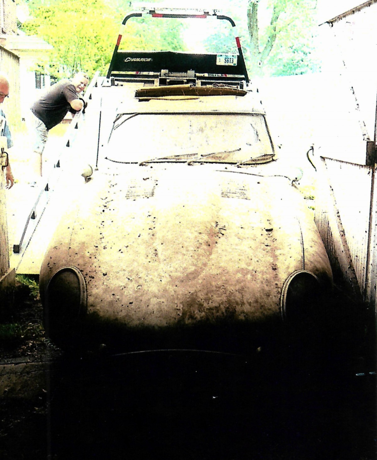 Dont know how current this find is…to me the photos look like old analogue photos that have been digitally scanned hence might explain the terrible looking bonnet which in fact is probably ok. [although the second shot could pass as current ] Is this a bit like the cobra in a barn stories…interesting but dated back 20 or 30 years so really of less relevance to finding cars in a barn today?