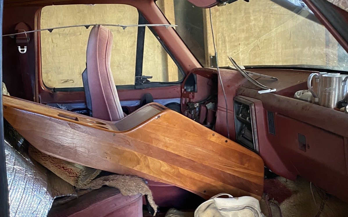 The base transmission in 1987 would have been a Borg-Warner T19 four speed– a five speed wouldn’t come along until the next year– though this truck comes equipped with an automatic transmission. This is most likely a 3-speed Ford C6, and the seller indicates that it has also been rebuilt. The interior looks rough, which is to be expected since the seller states that we’re looking at a stalled restoration. Yet, carpets aside, there’s a lot to love even here: that center console looks custom, and the bucket seats are a big improvement over a bench for long trips to bring home another new acquisition. And take a look at the wheels!